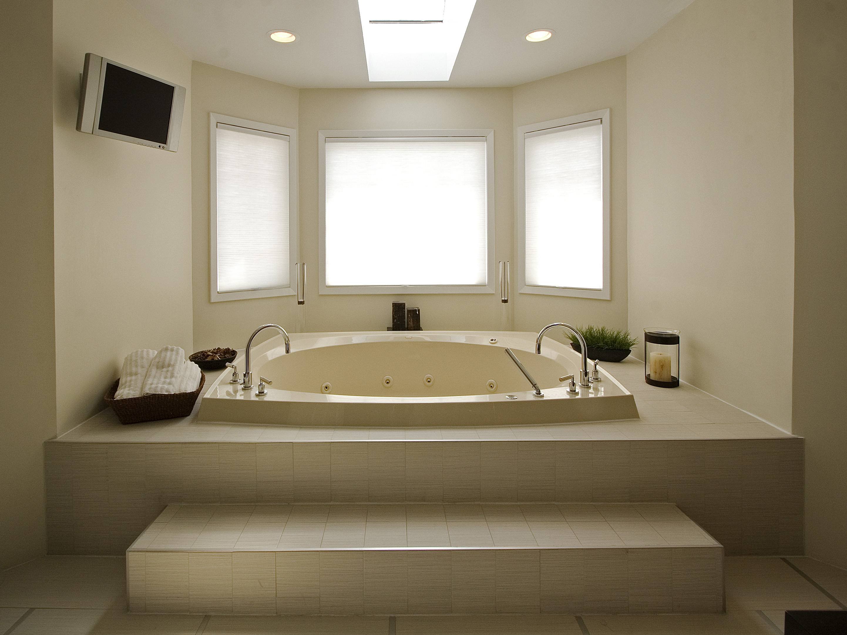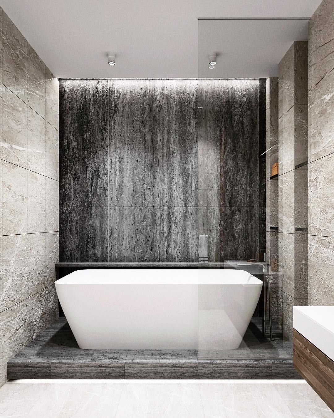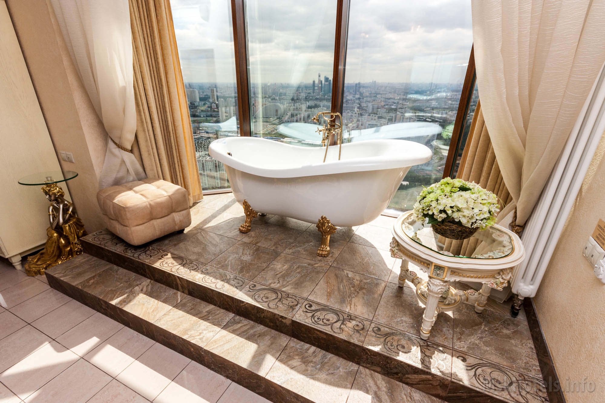 Отдельностоящая ванна на подиуме в интерьере
