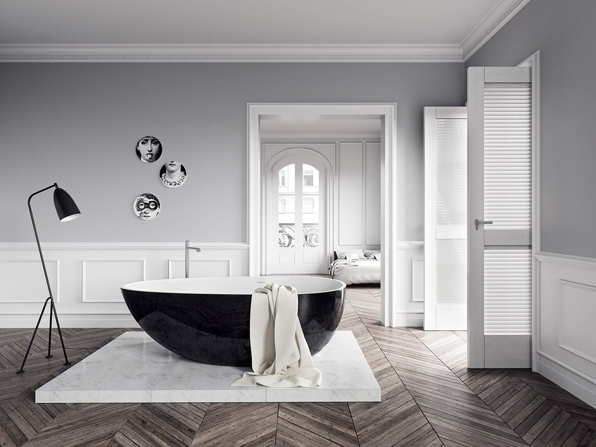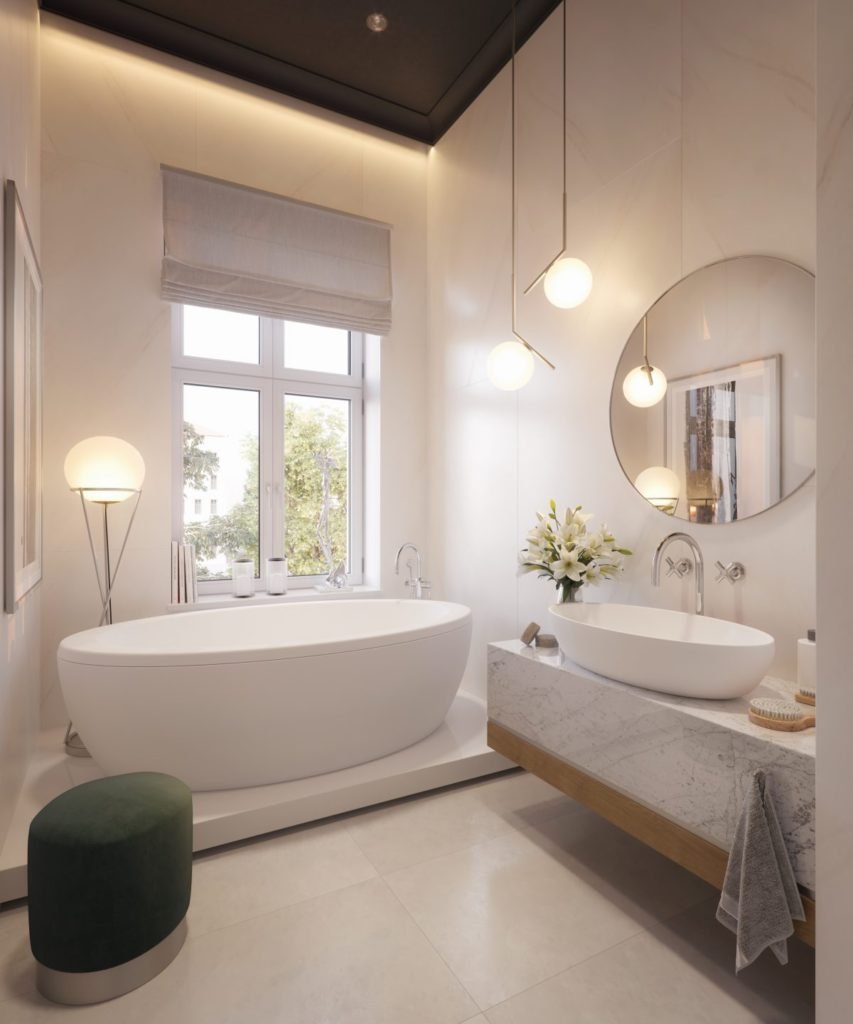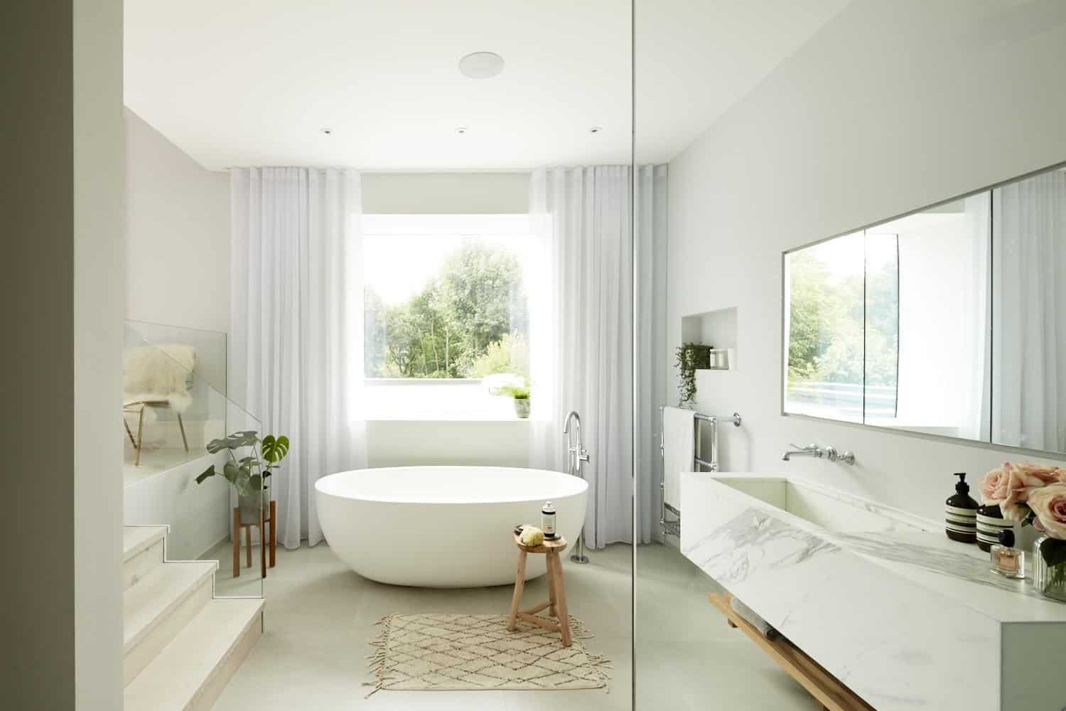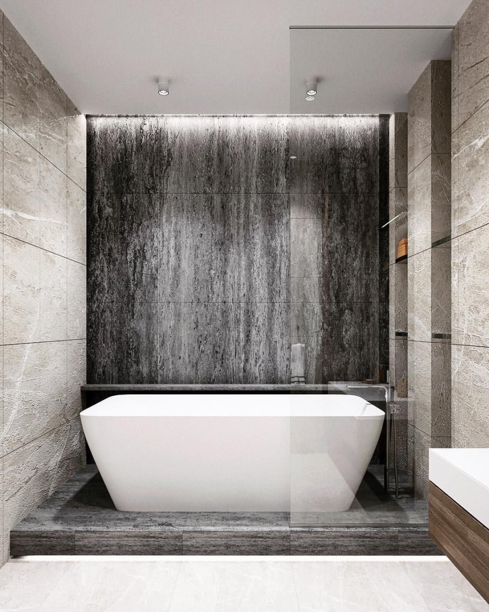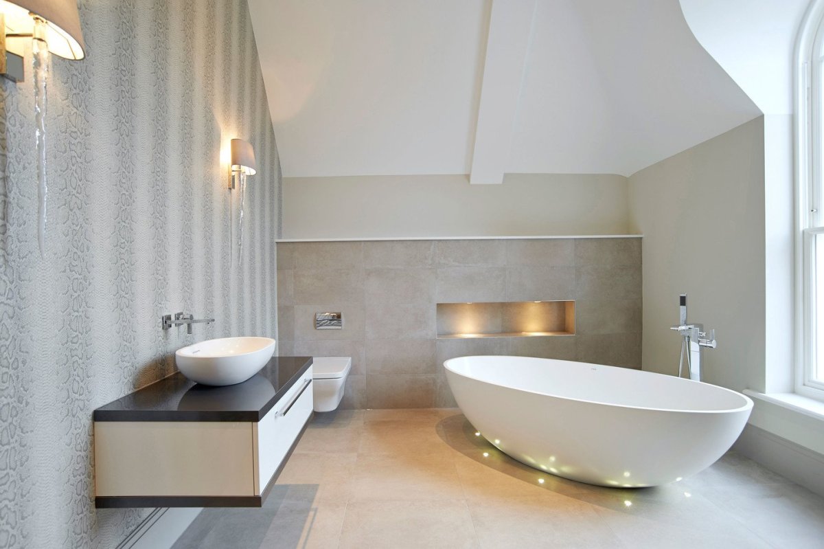 Отдельностоящая ванна в интерьере