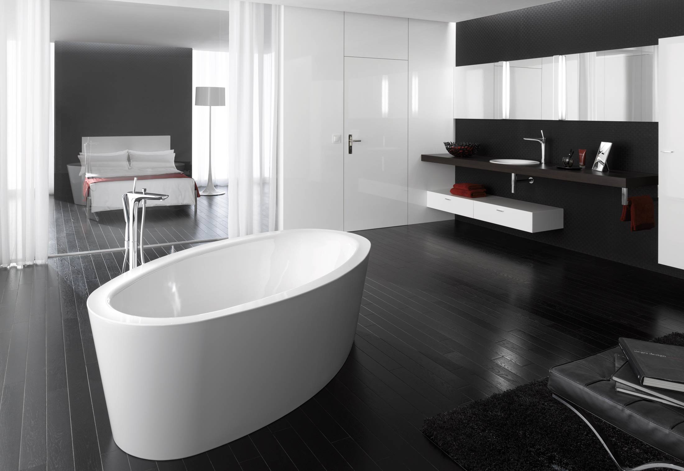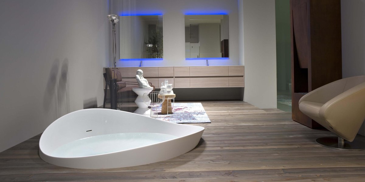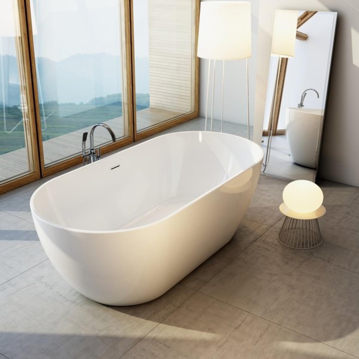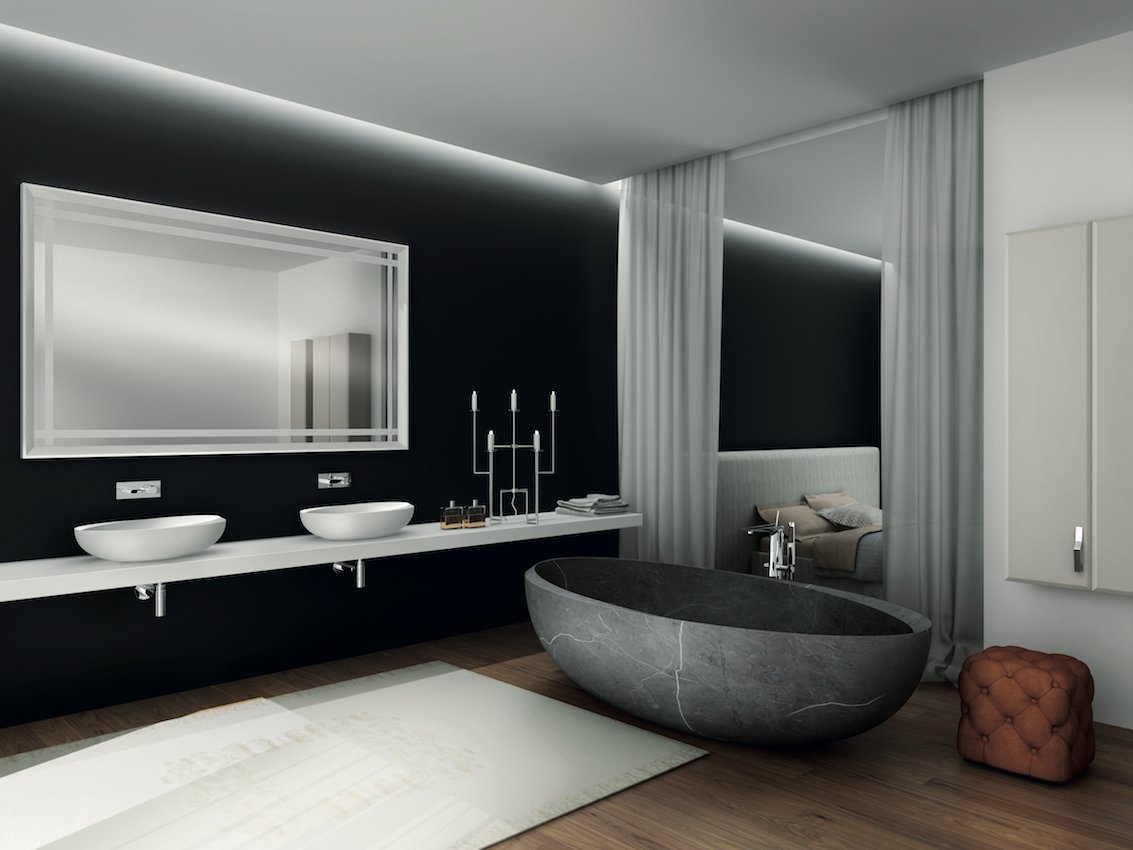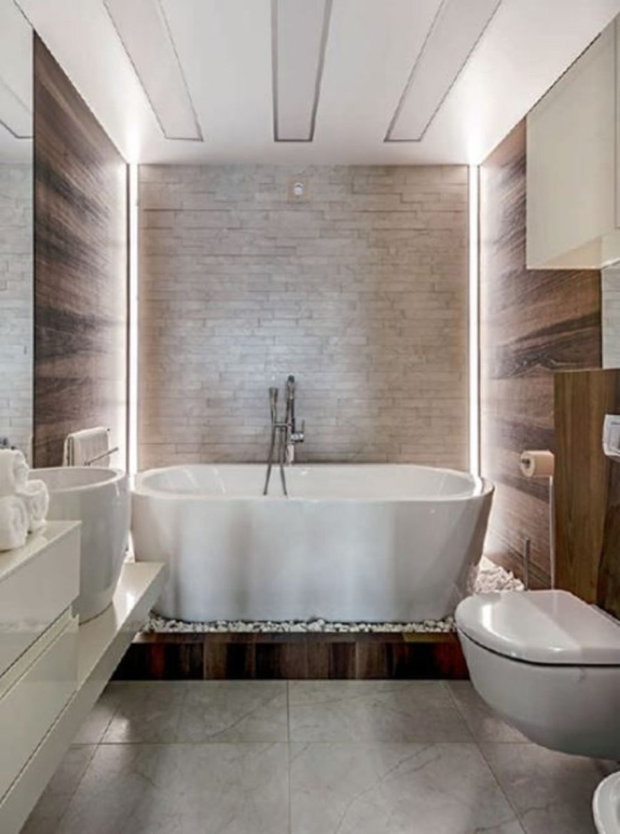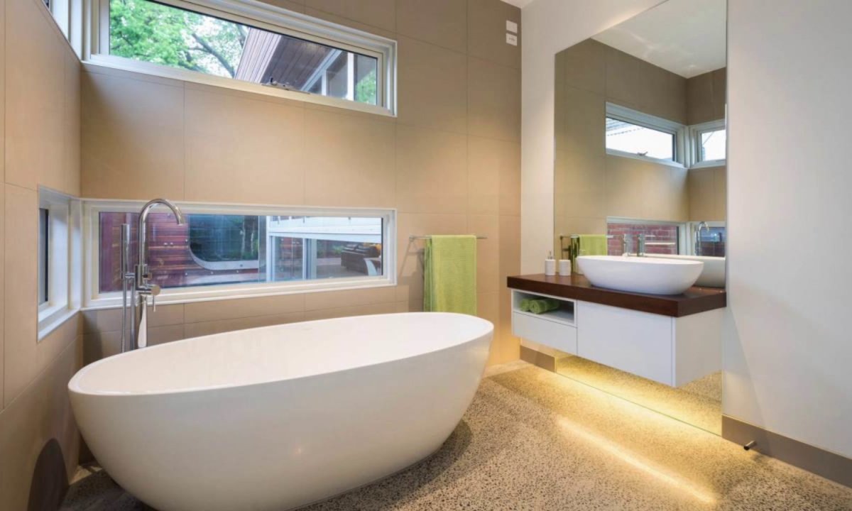 Отдельностоящая ванна в интерьере