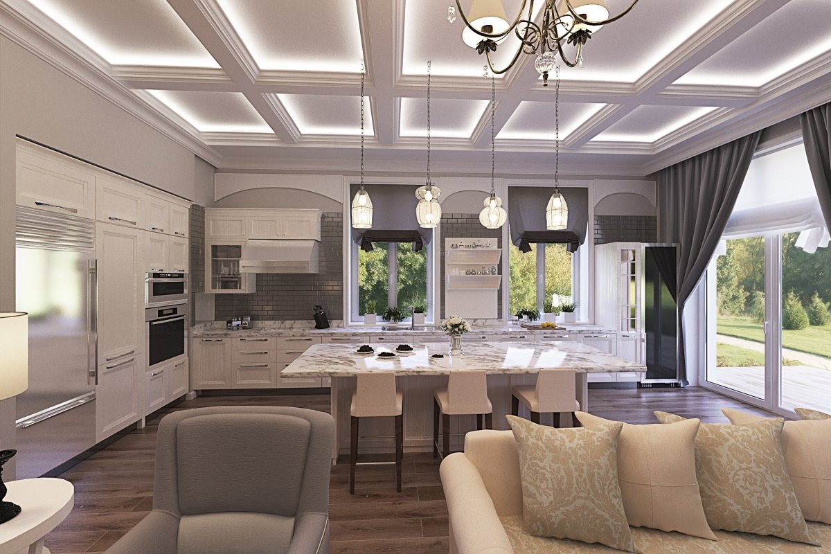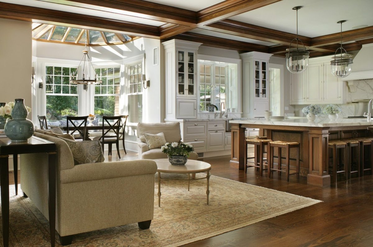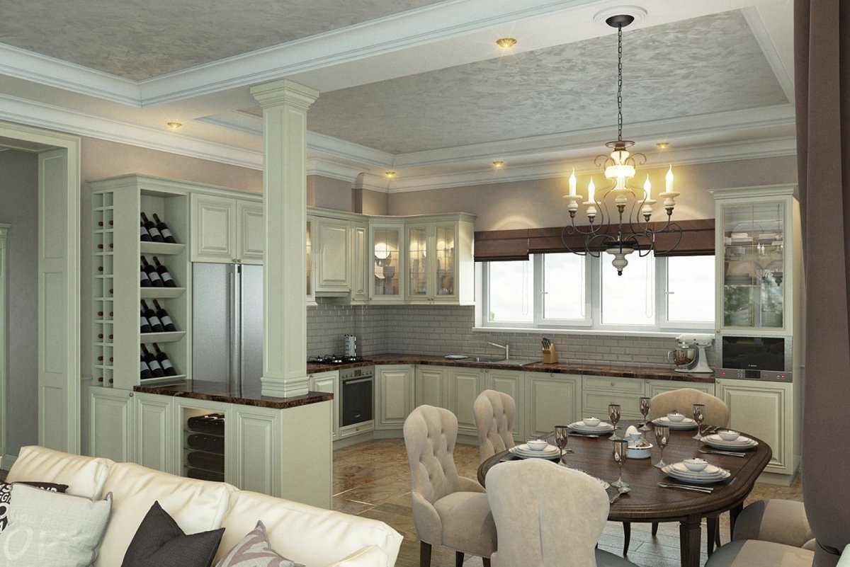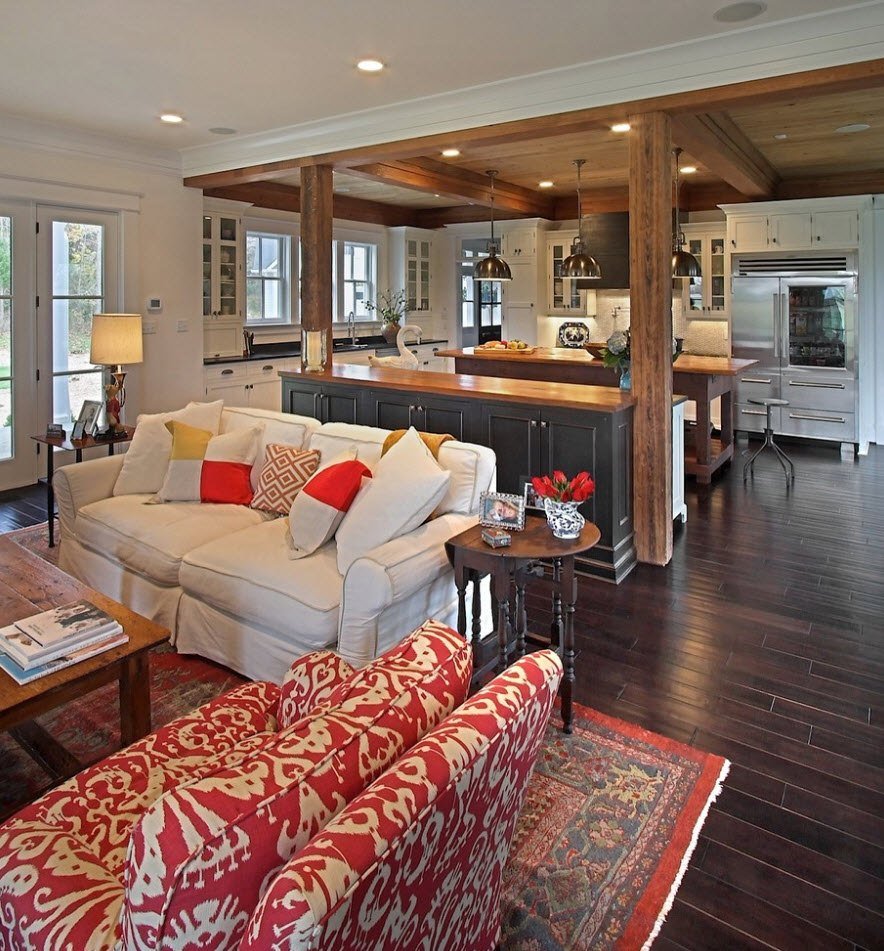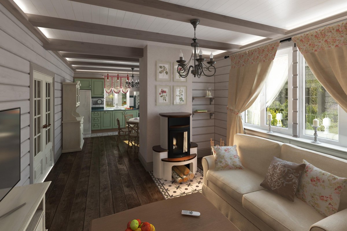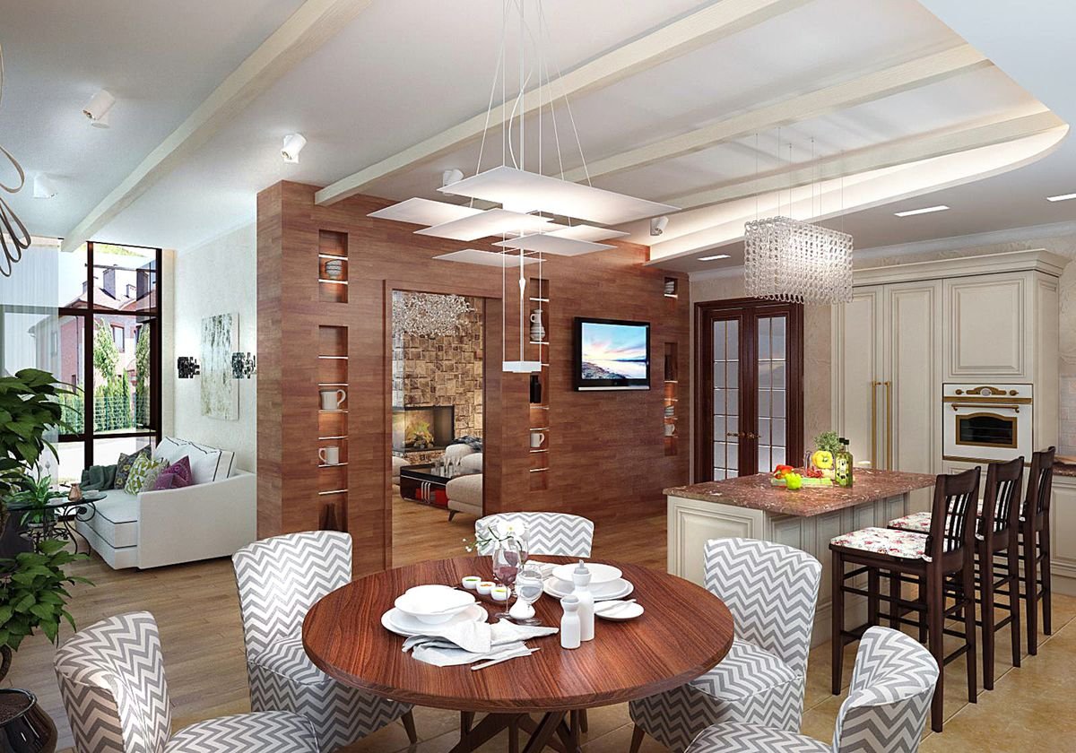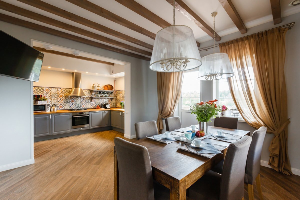 Интерьер кухни-гостиной 30 кв.м в загородном доме