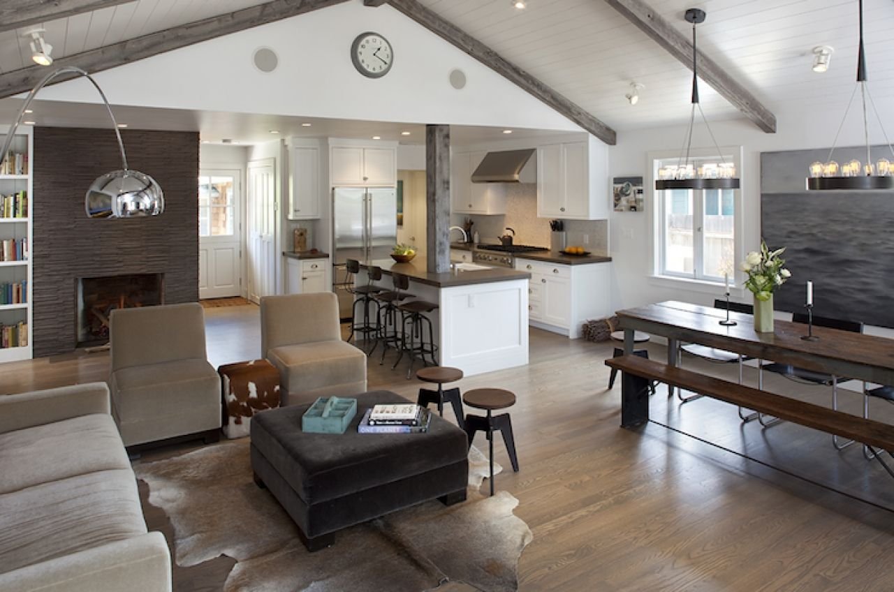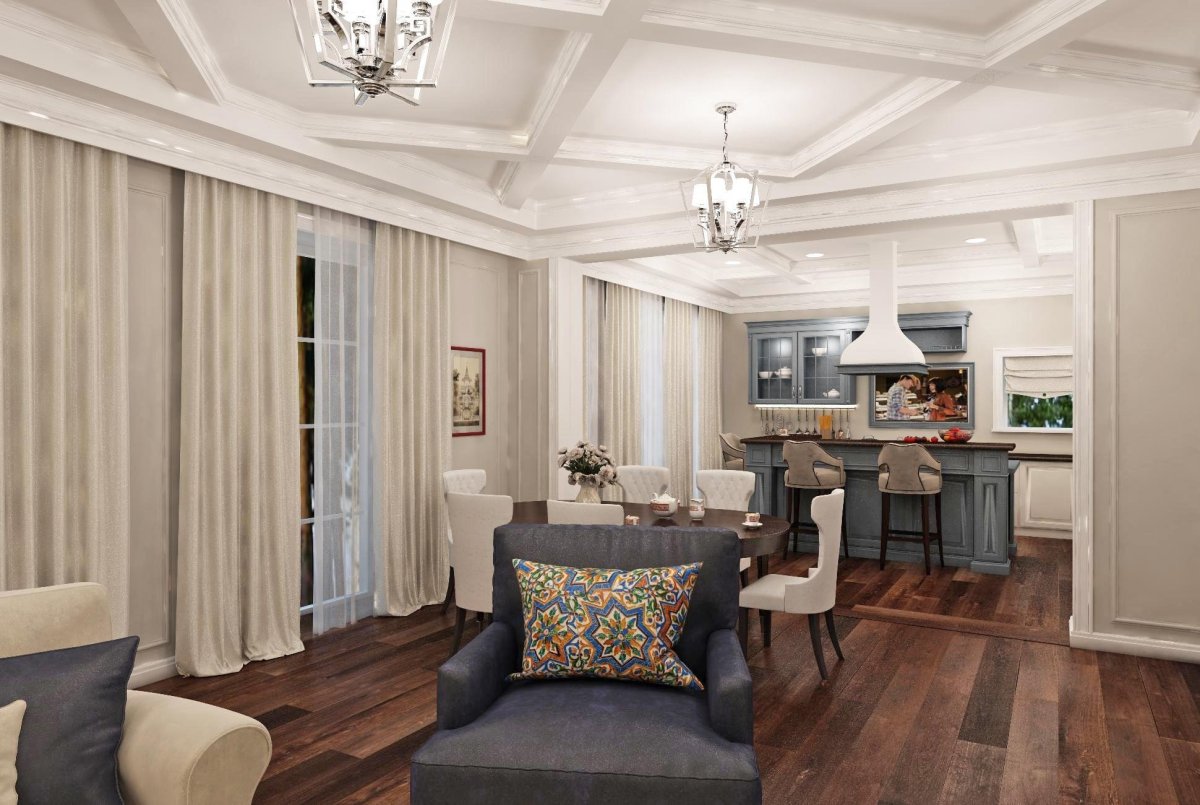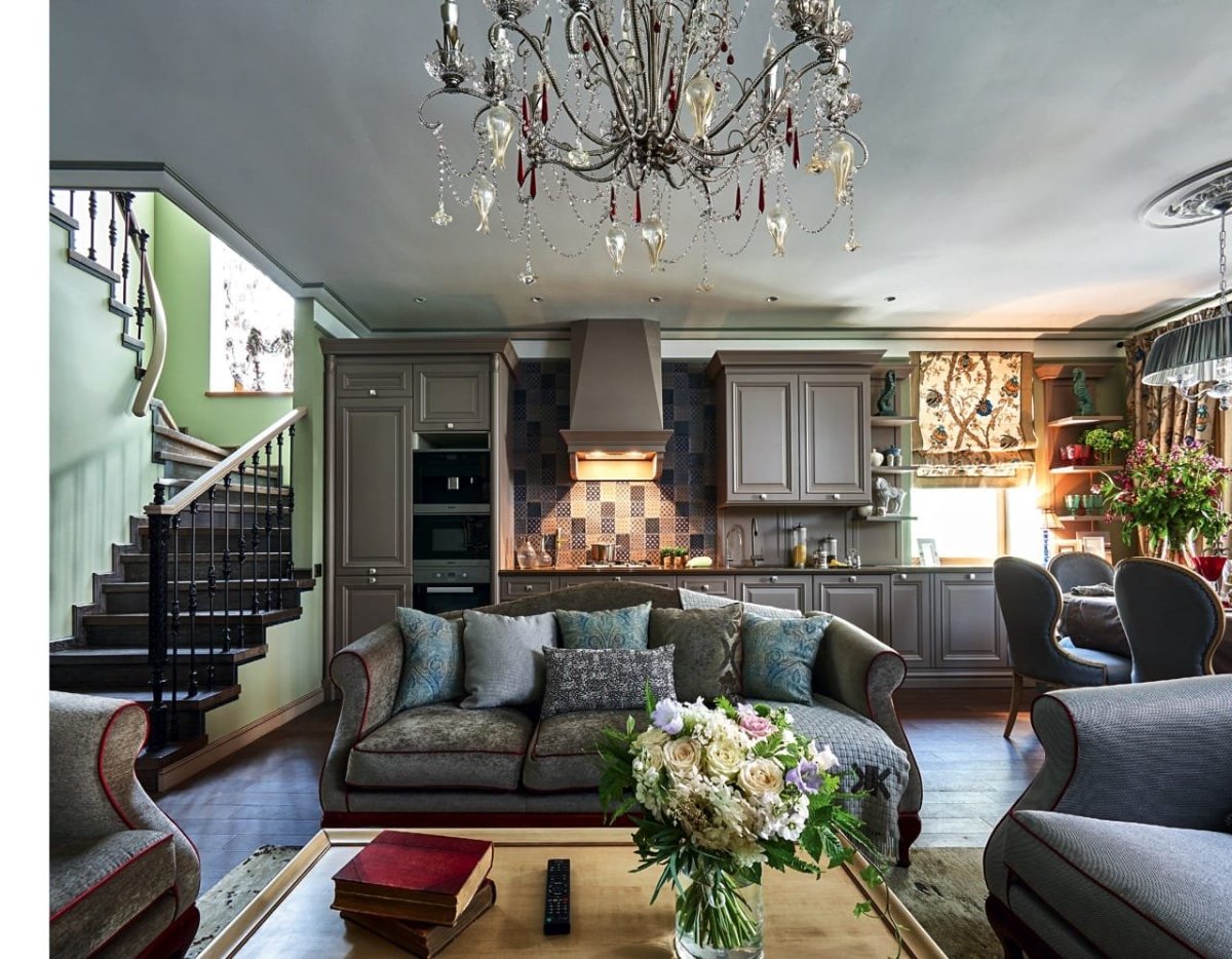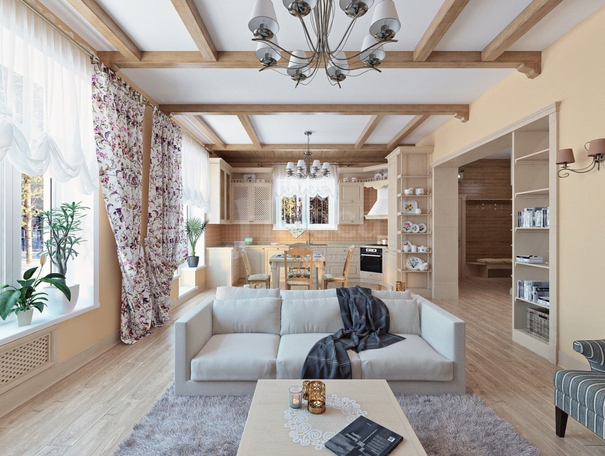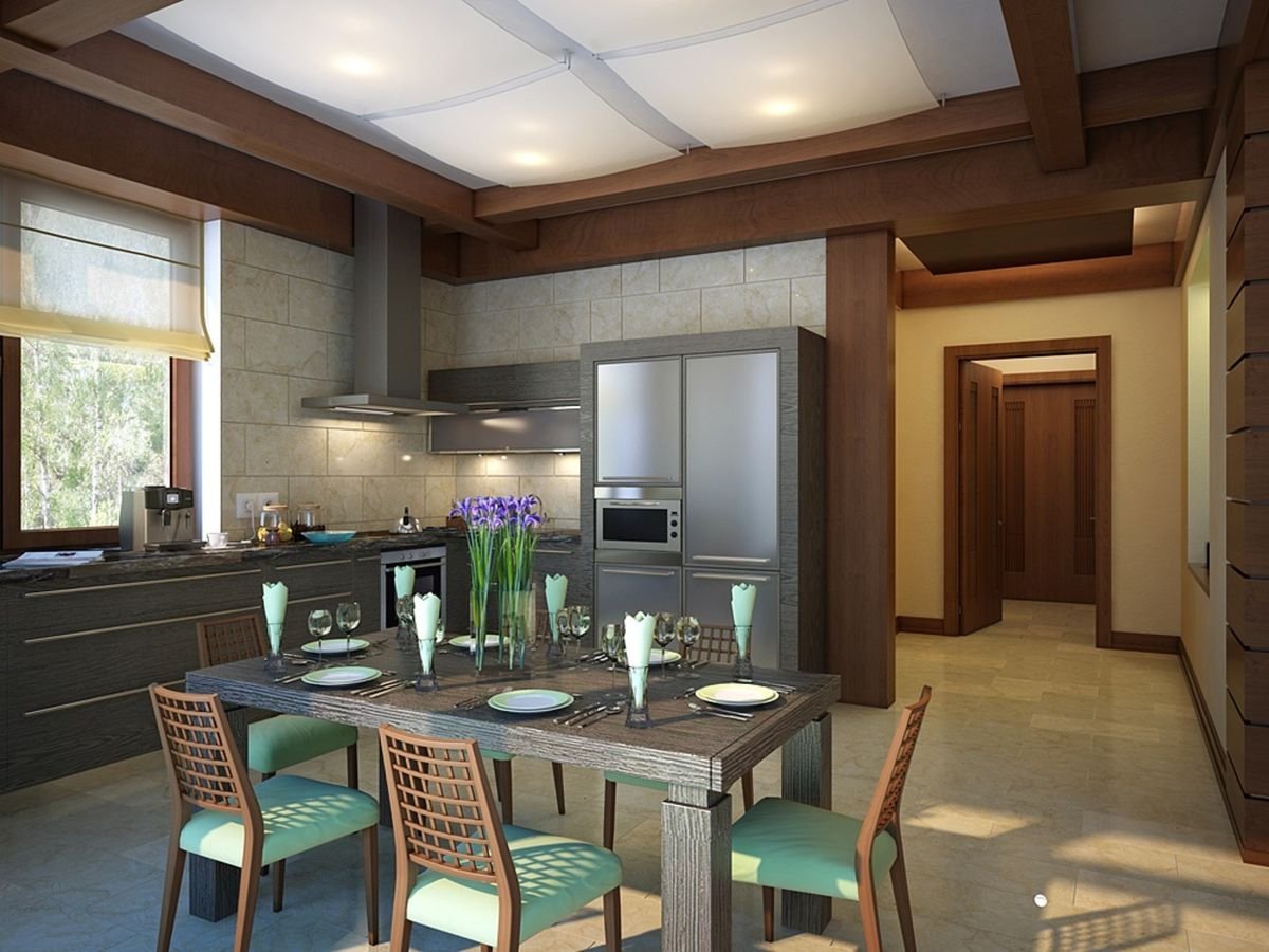 Интерьер кухни-гостиной 30 кв.м в загородном доме