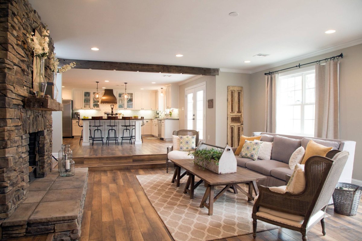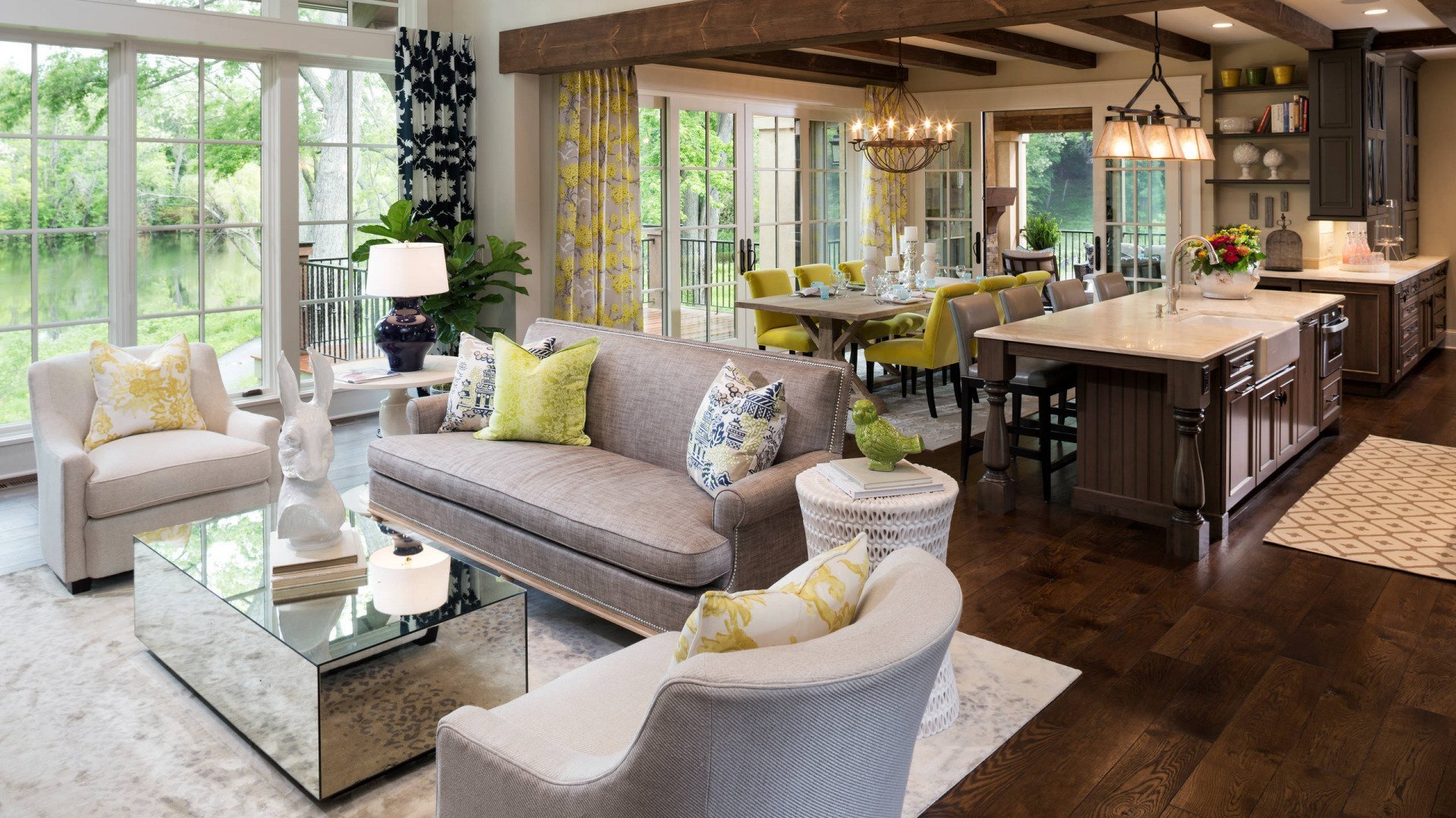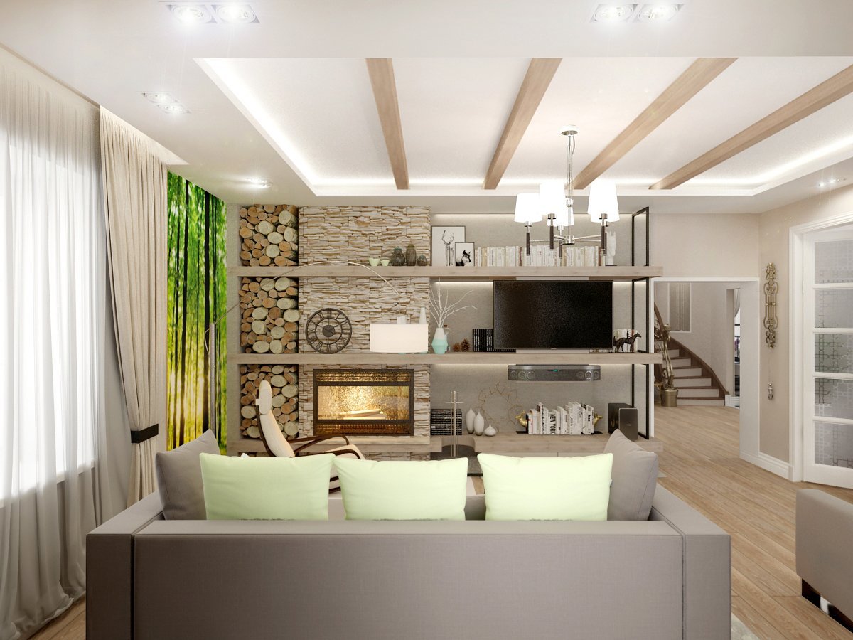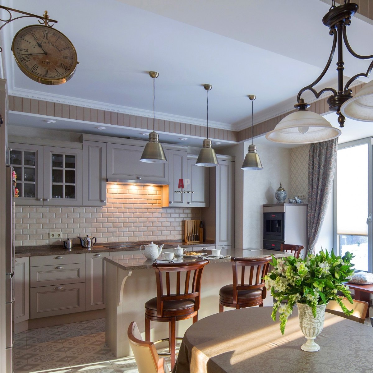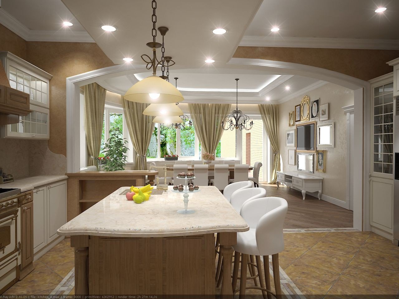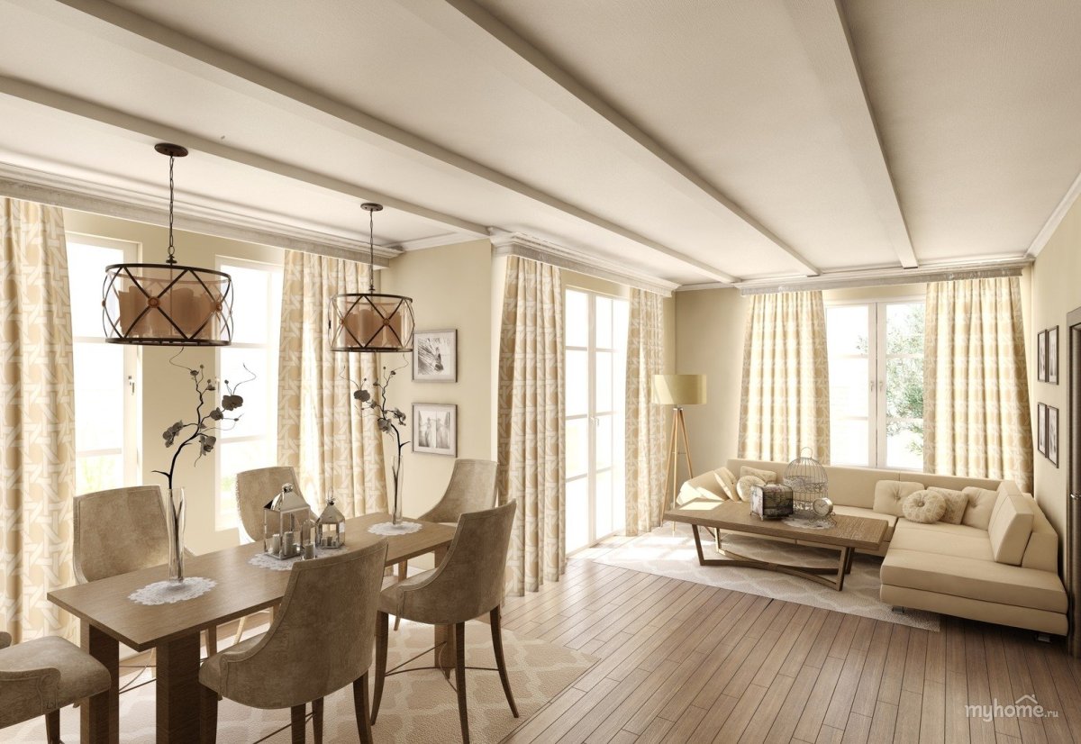 Интерьер кухни-гостиной 30 кв.м в загородном доме