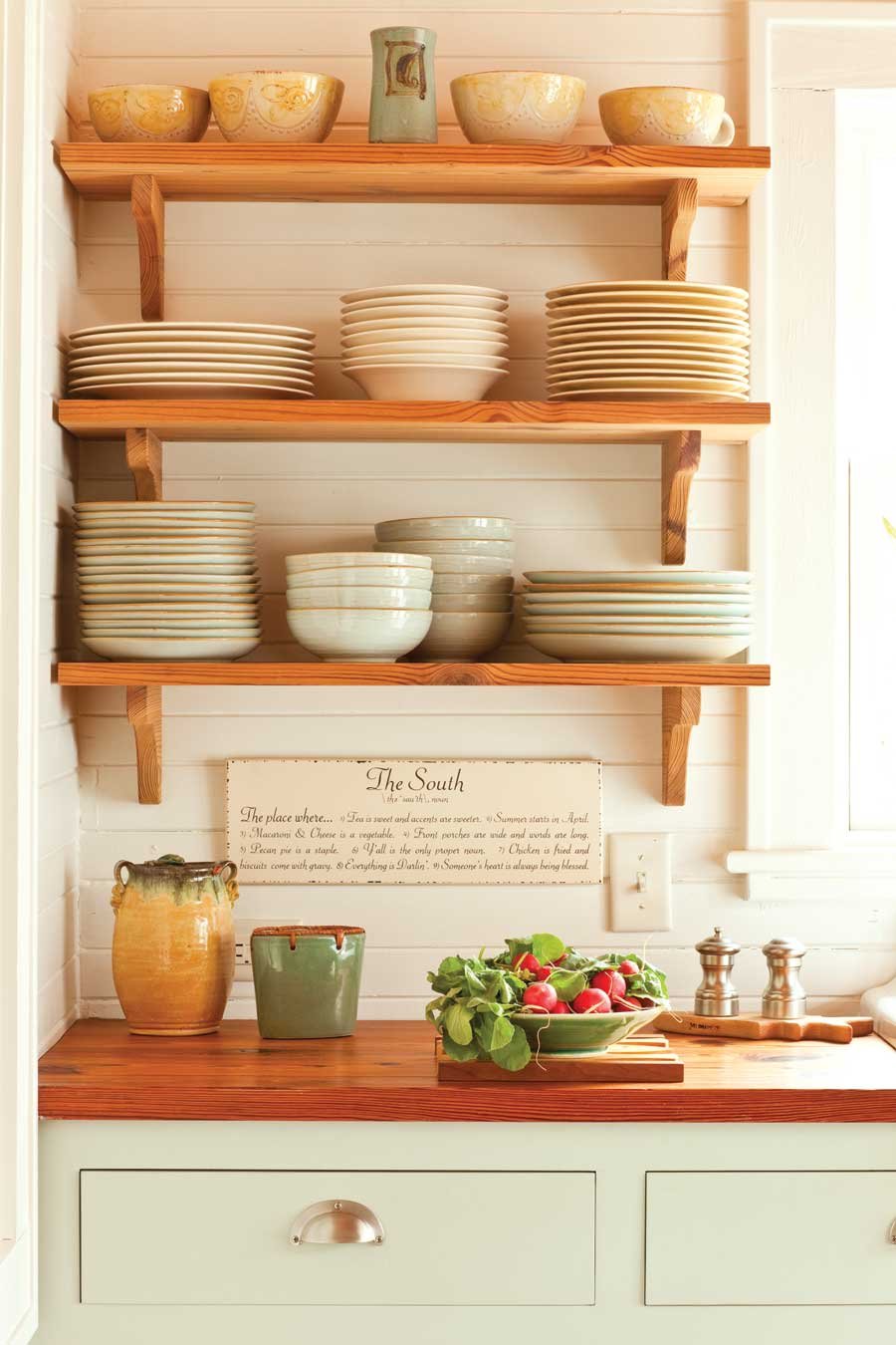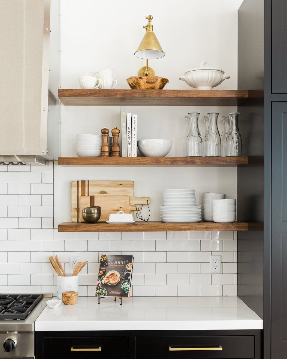 Открытые полочки на кухне