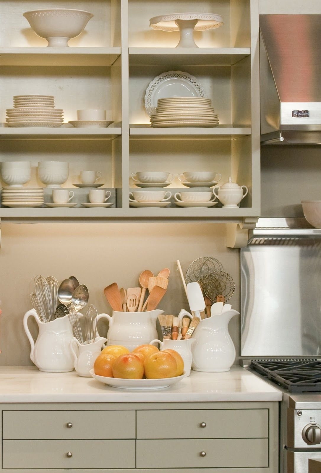 Белые полки на кухне