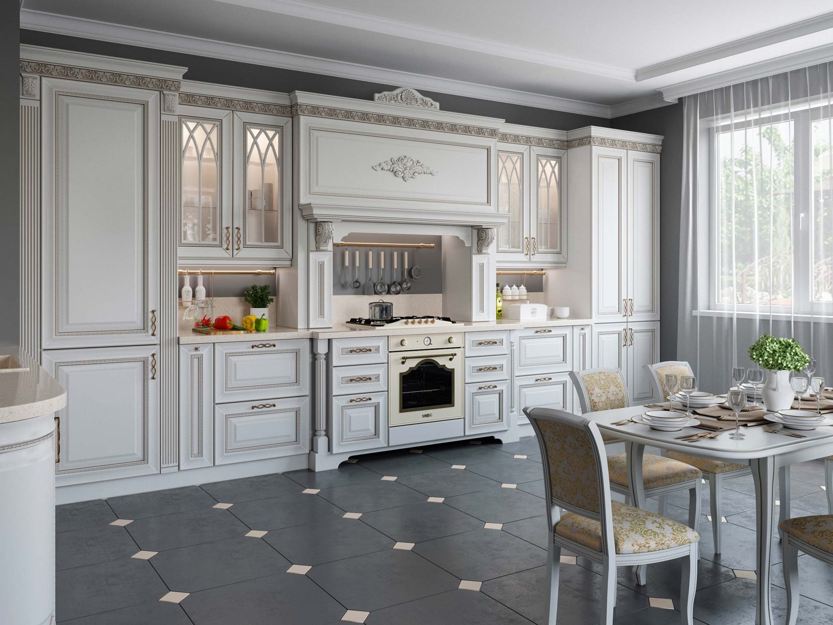 Кухня белая классика