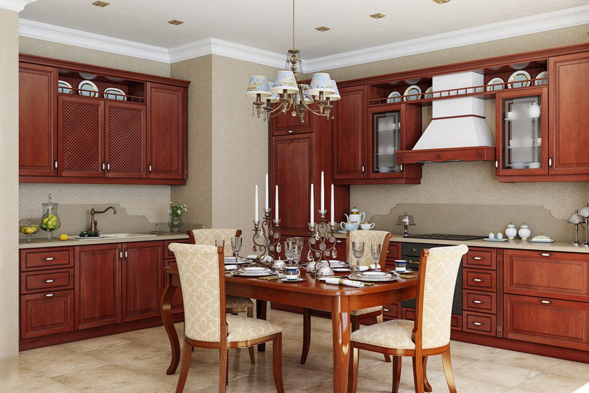 Кухонный гарнитур из красного дерева