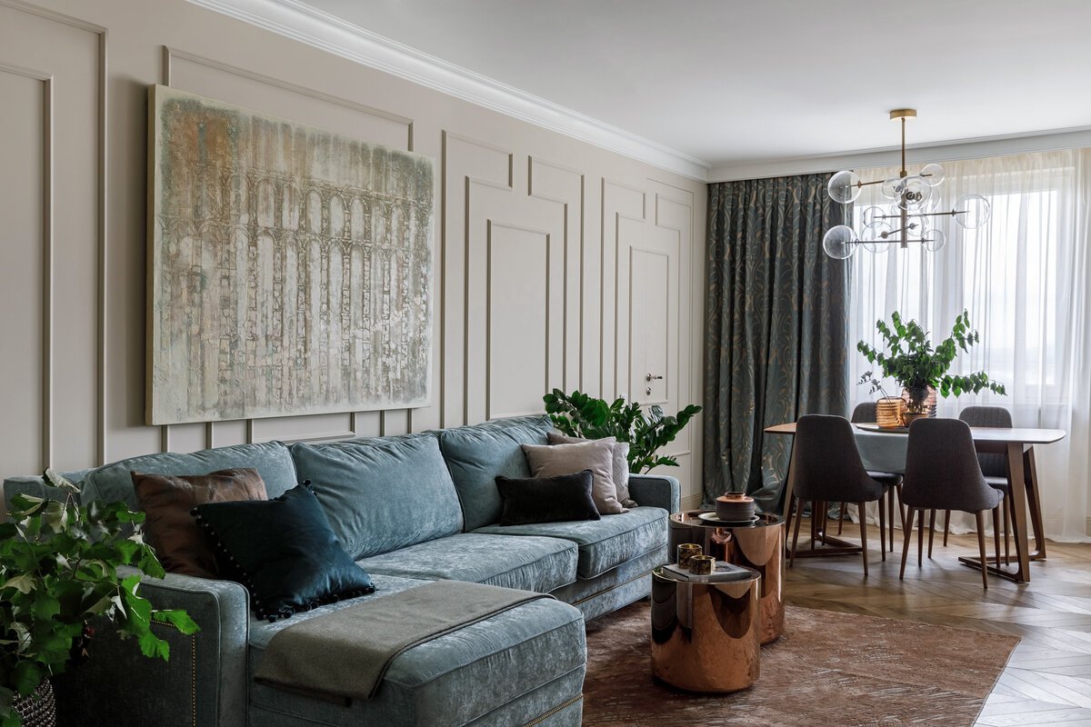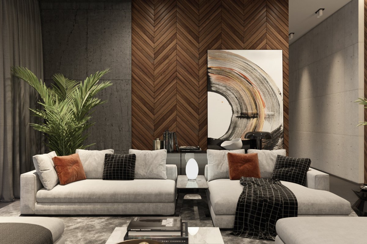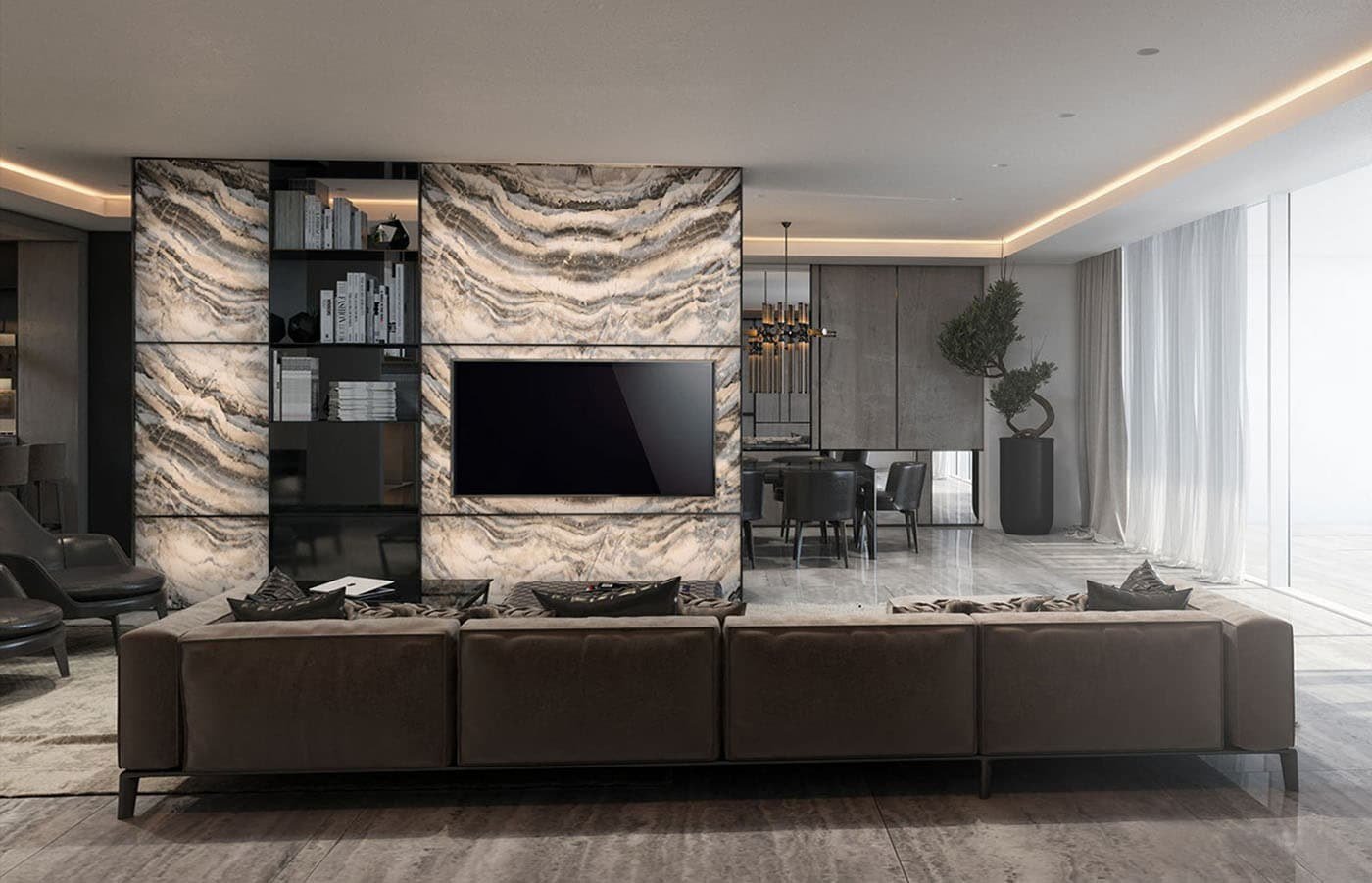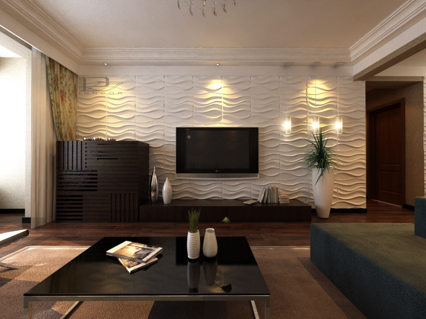 Декоративная штукатурка для внутренней отделки стен в гостиной