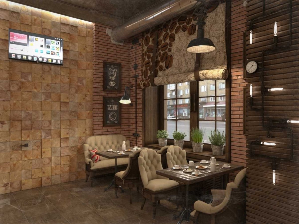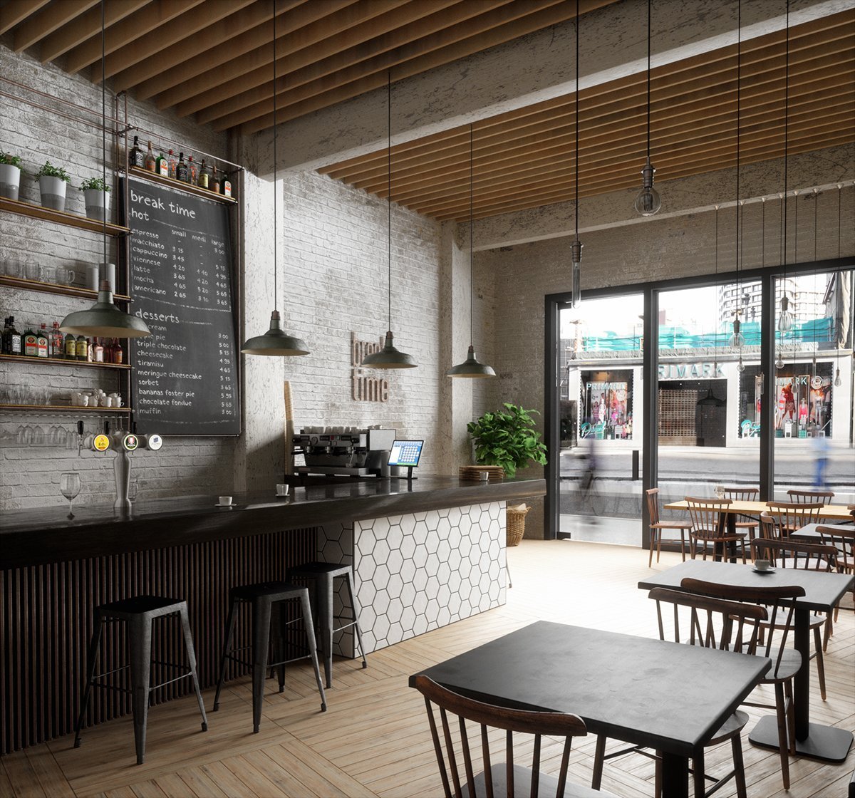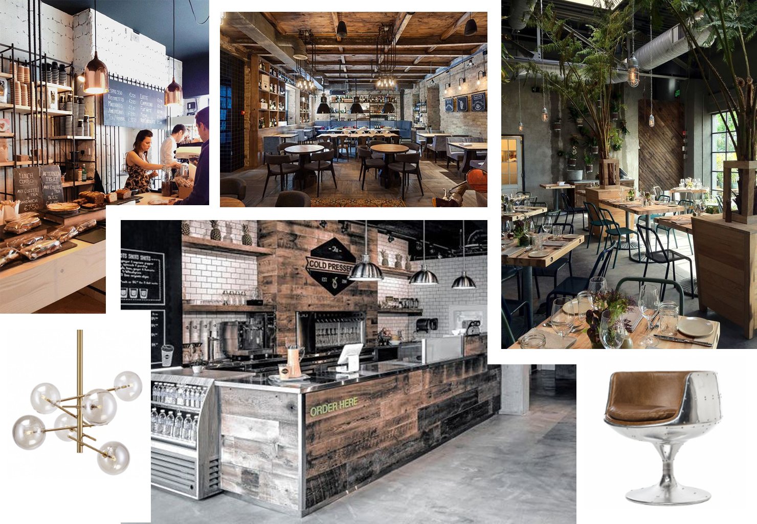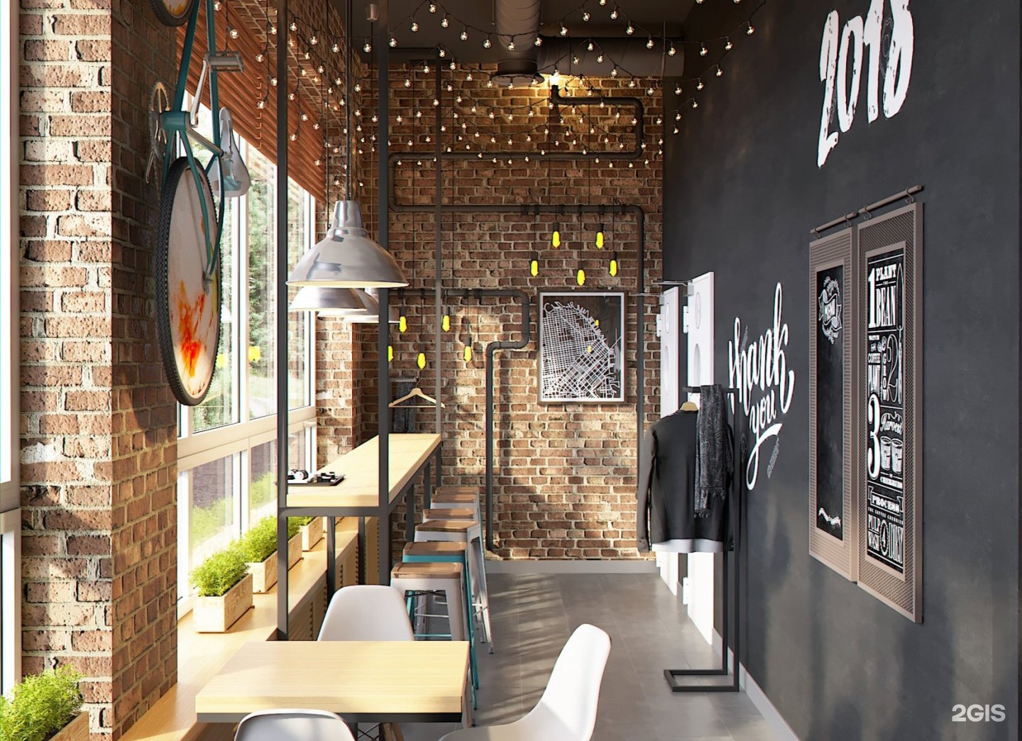 Интерьер кафе в стиле лофт Индустриальный Шик