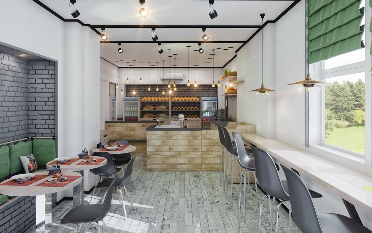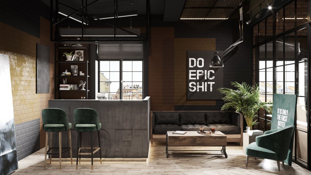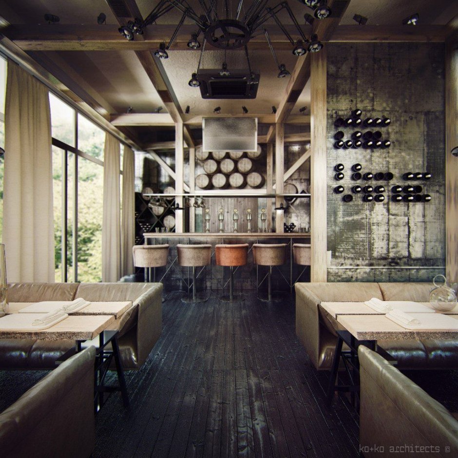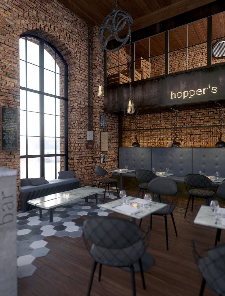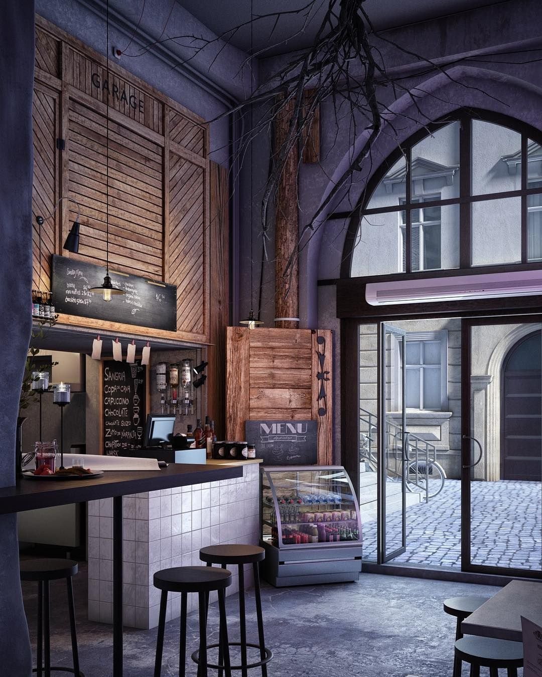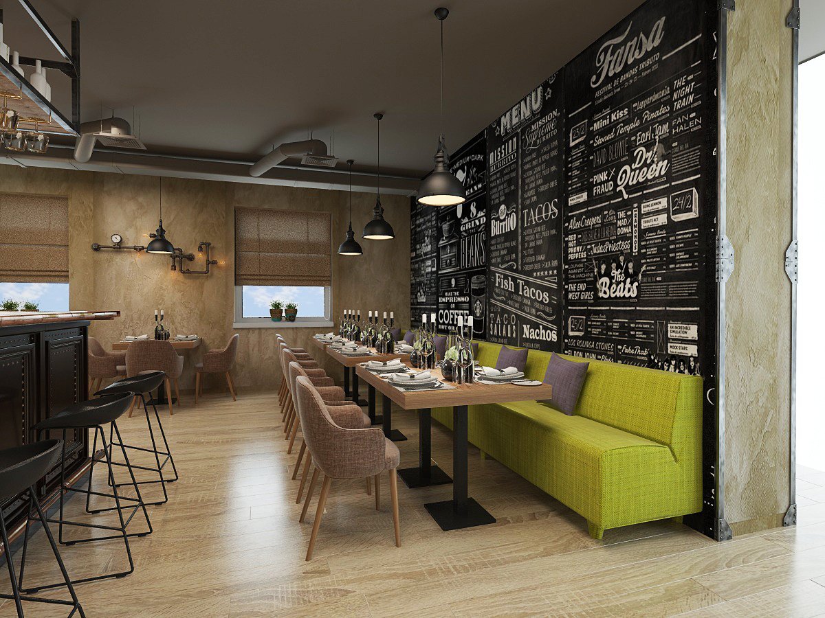 Интерьер кафе в стиле лофт Индустриальный Шик