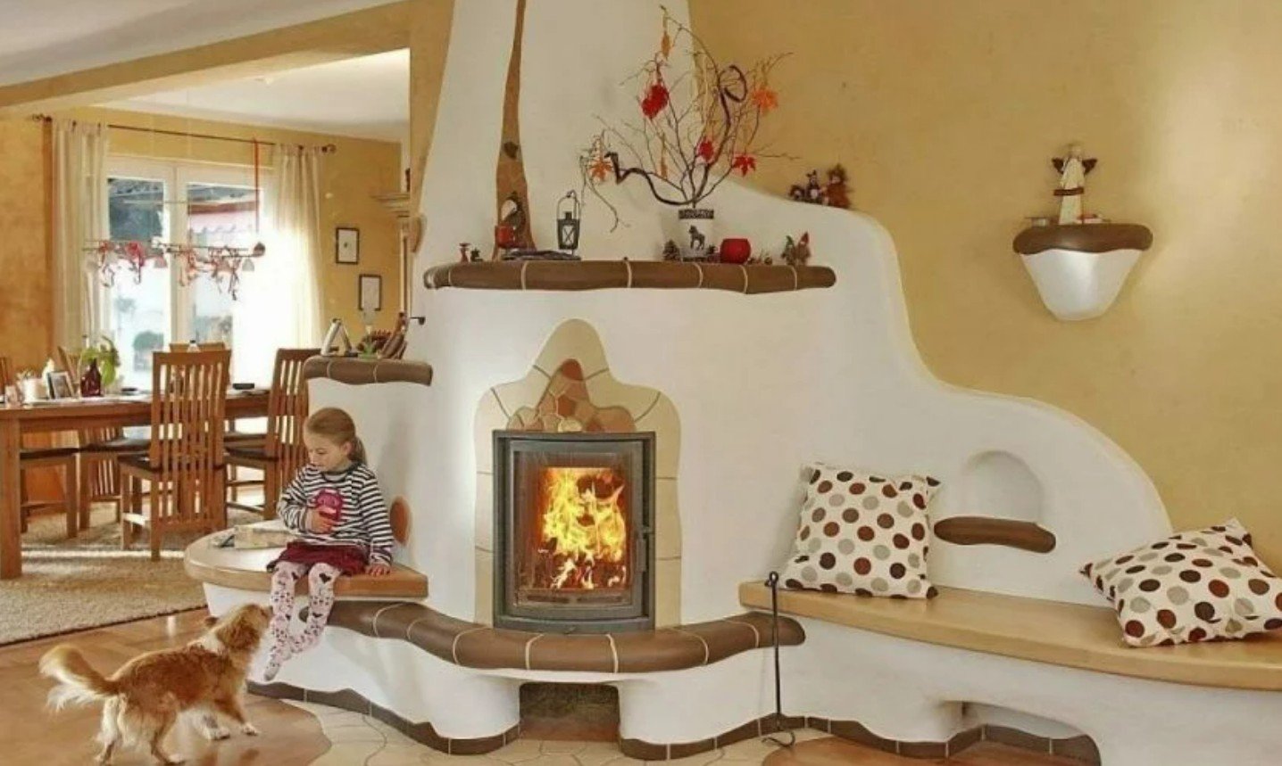 Печь с лежанкой в современном интерьере