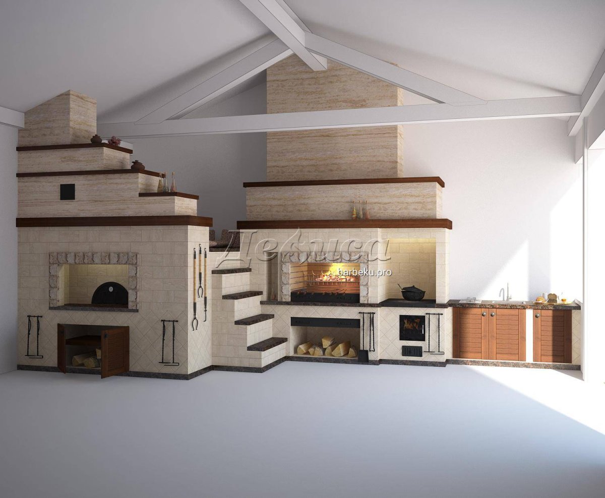 Русская печь с камином проекты