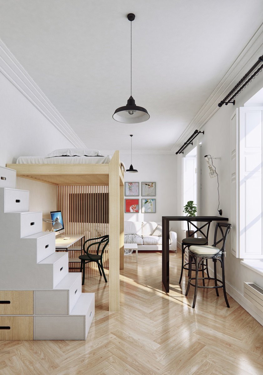 Лестница на антресольный этаж в маленькой квартире