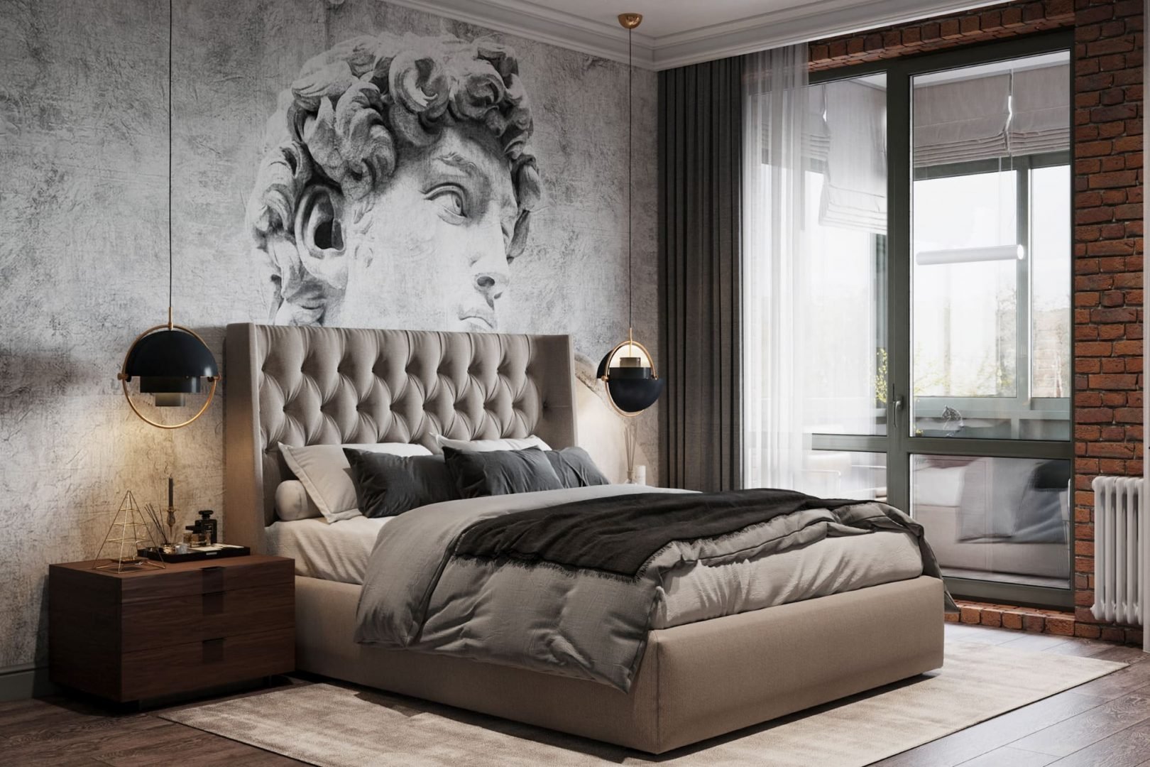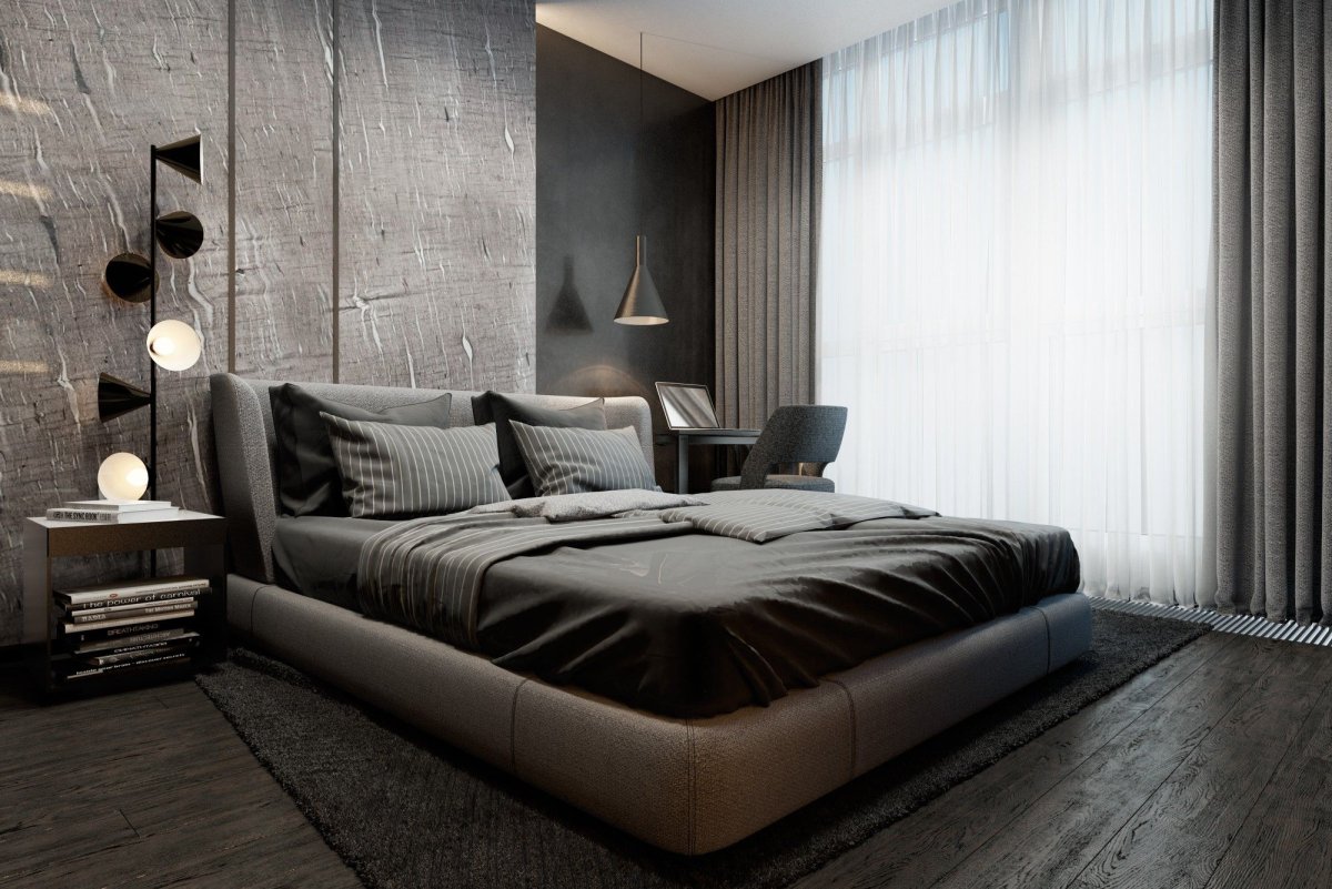 Спальня в стиле лофт серая