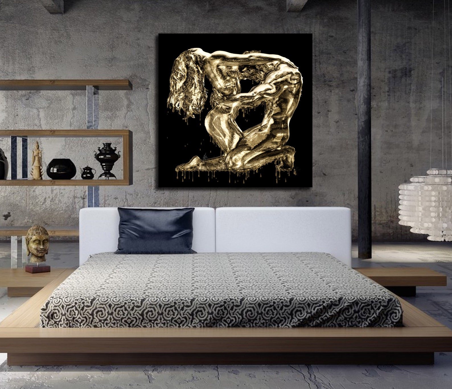 Кровать в интерьере лофт