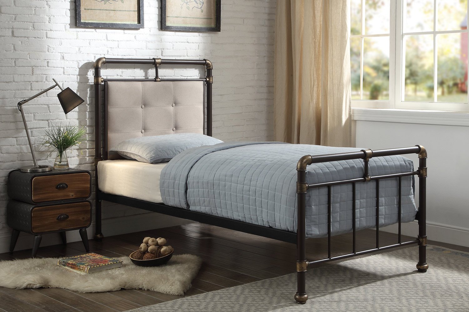 Кровать в стиле лофт с мягким изголовьем