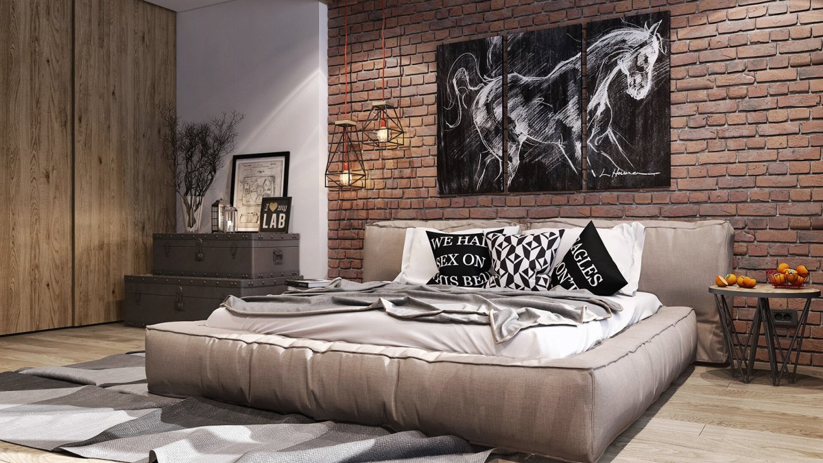 Спальня в современном стиле лофт