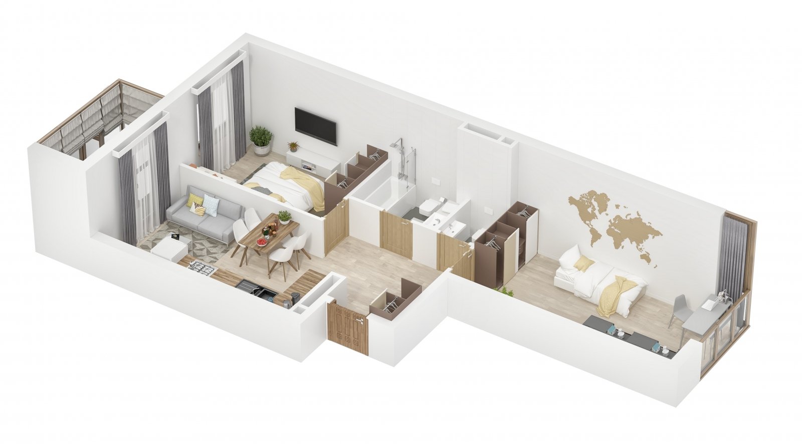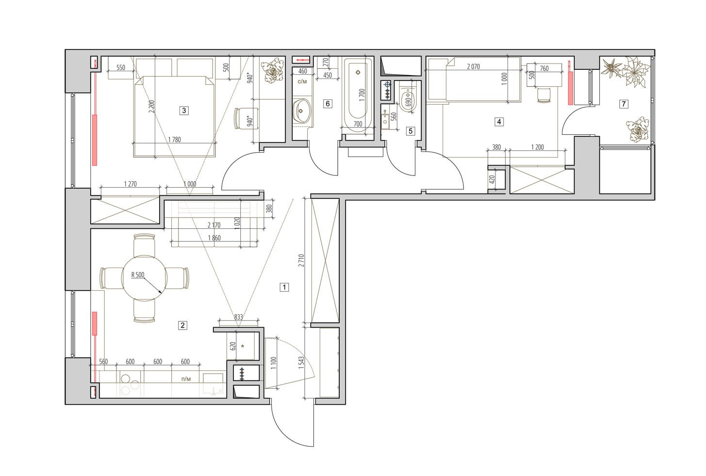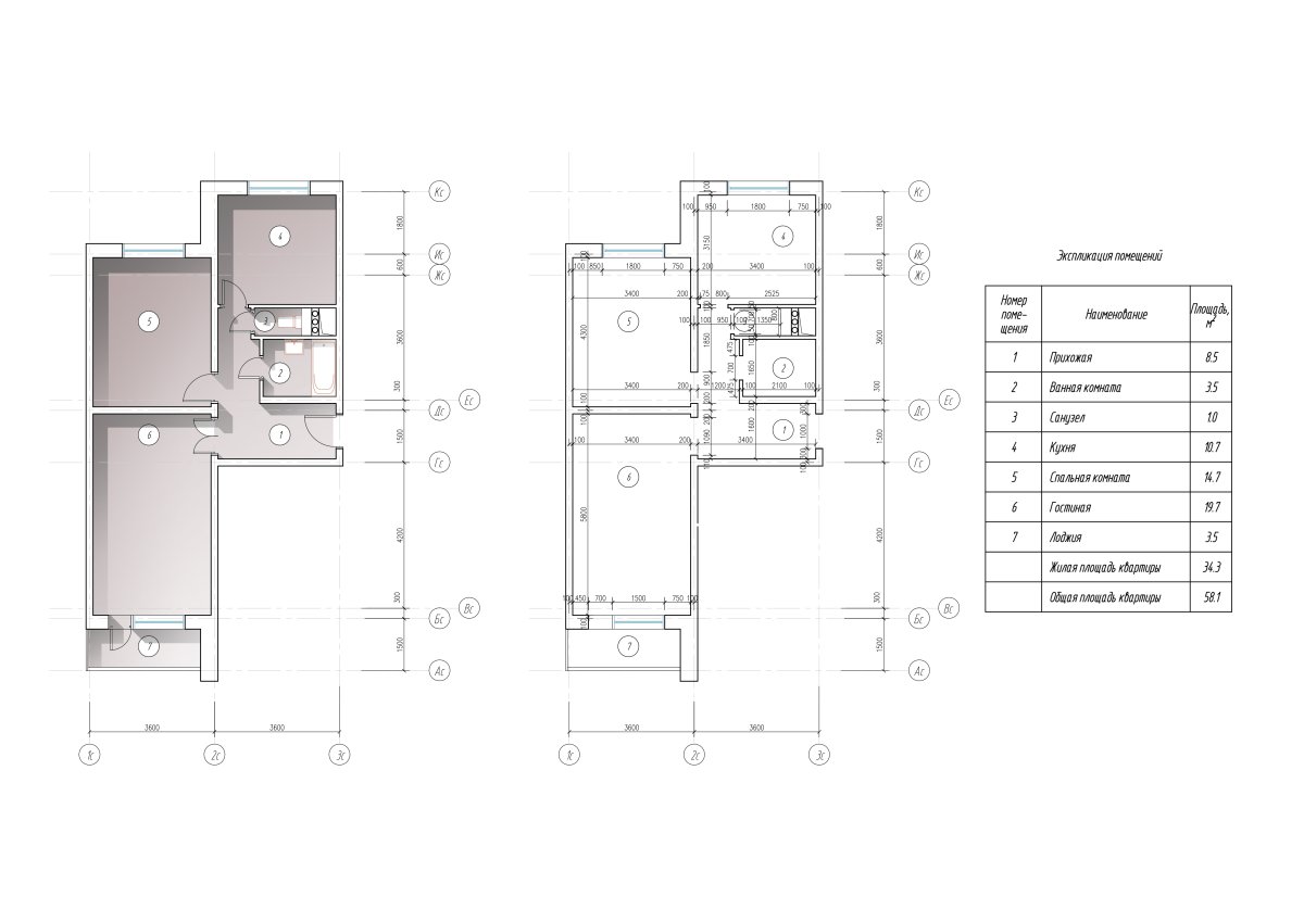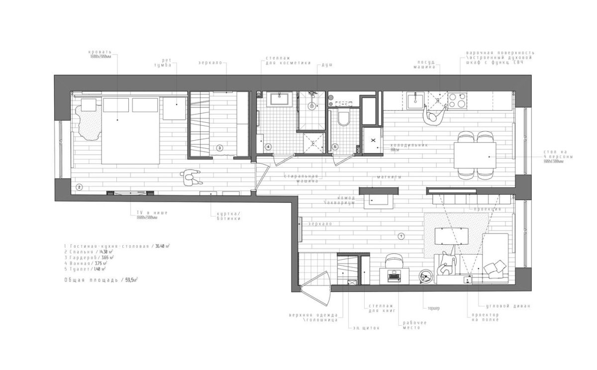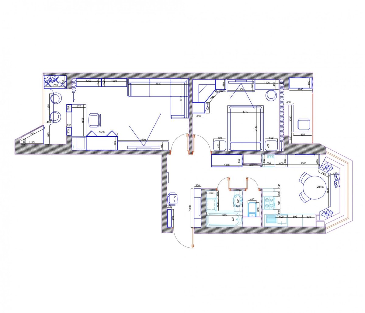 Дизайн проект двухкомнатной квартиры 60 кв.м планировка