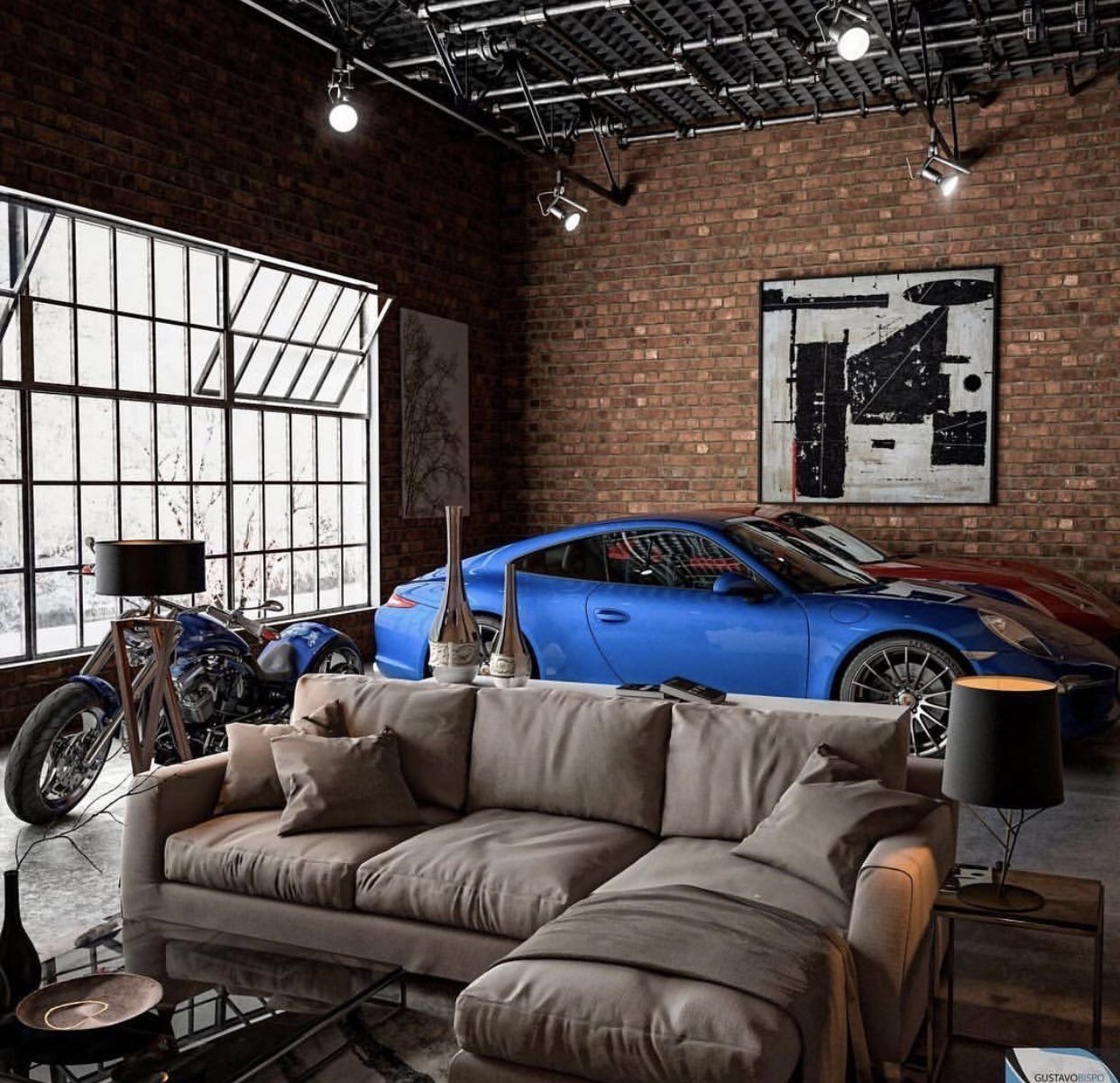 Гараж в стиле лофт кирпич