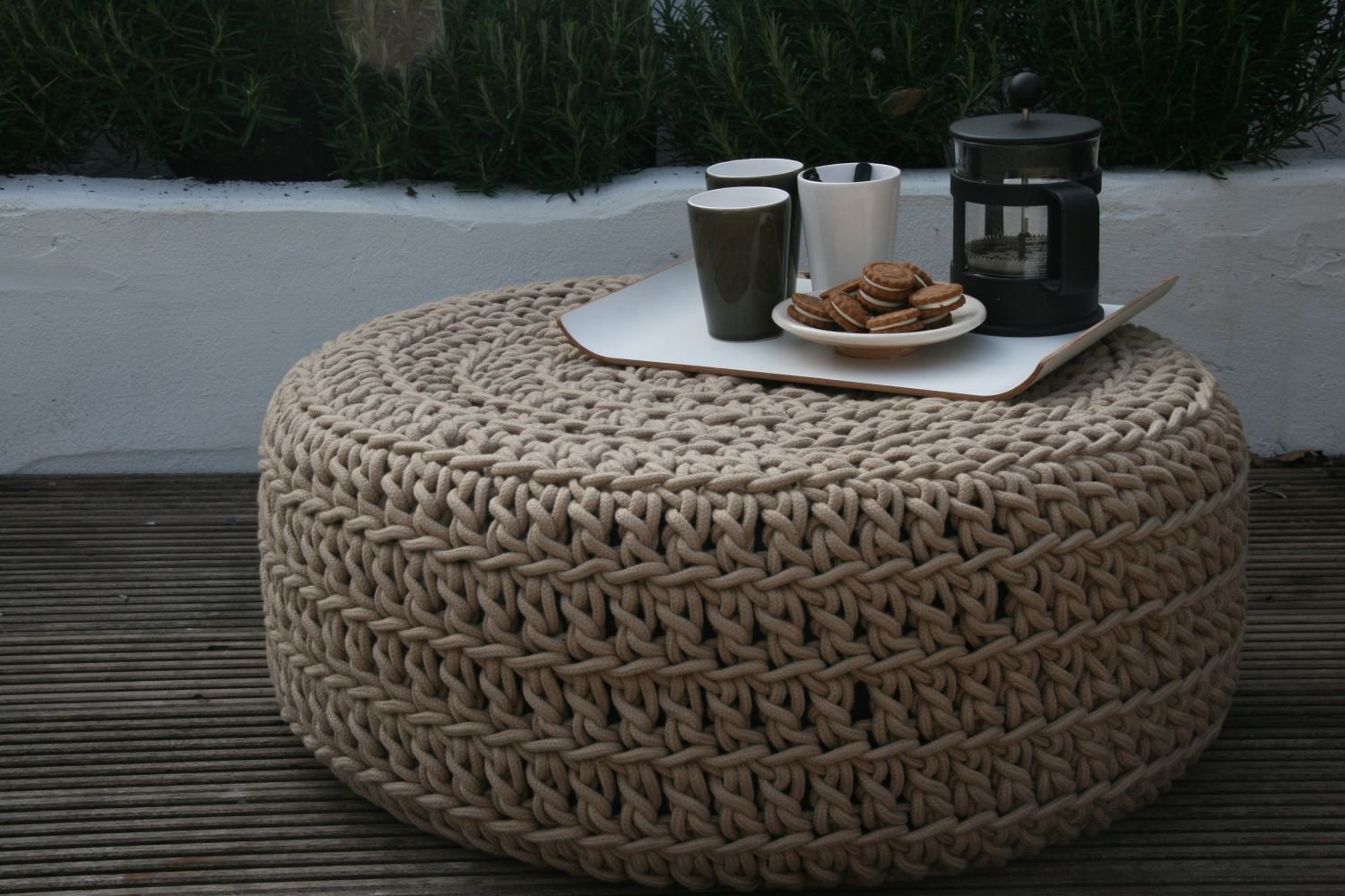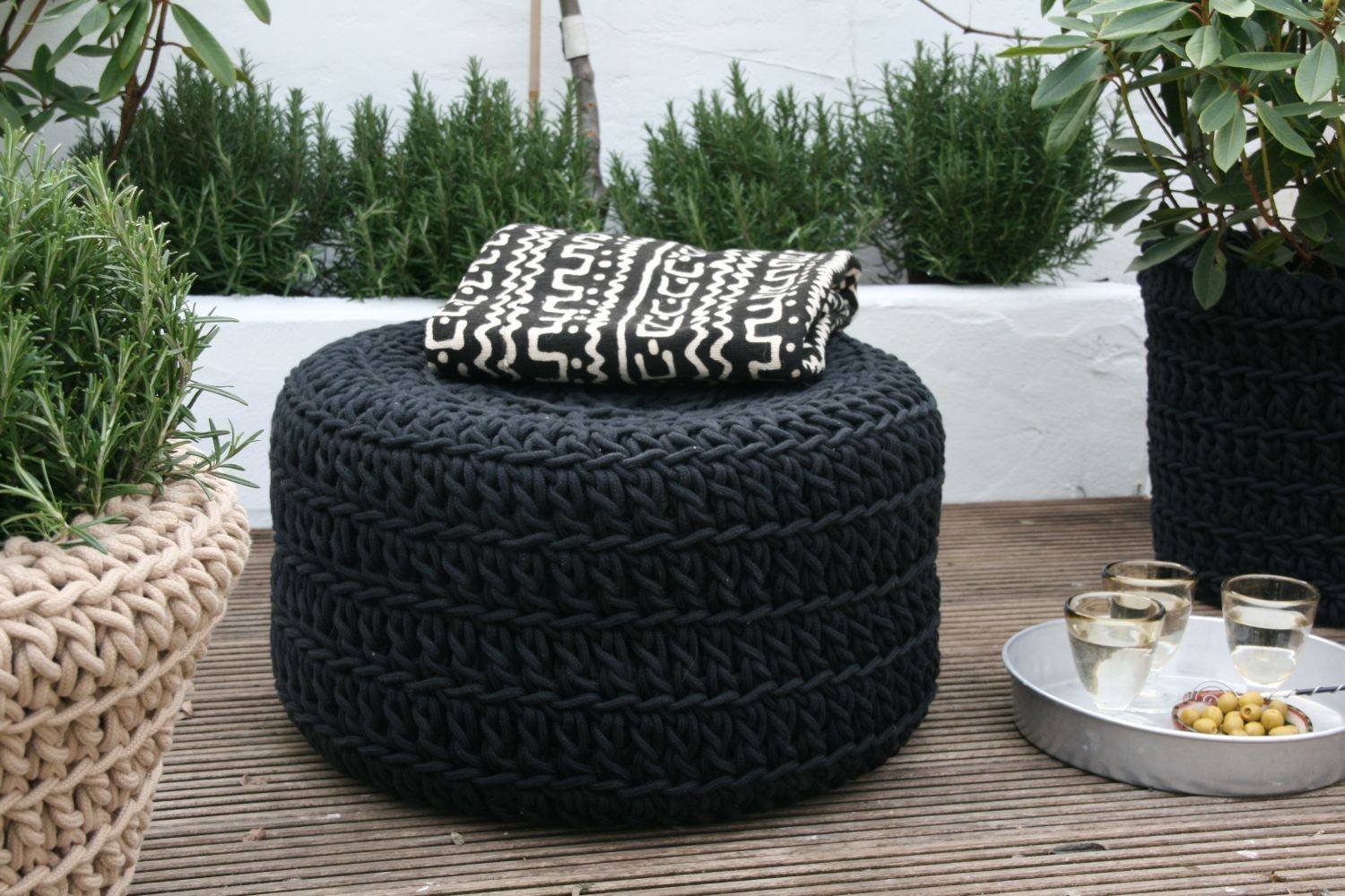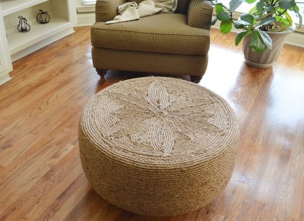 Пуф из шины вязаный