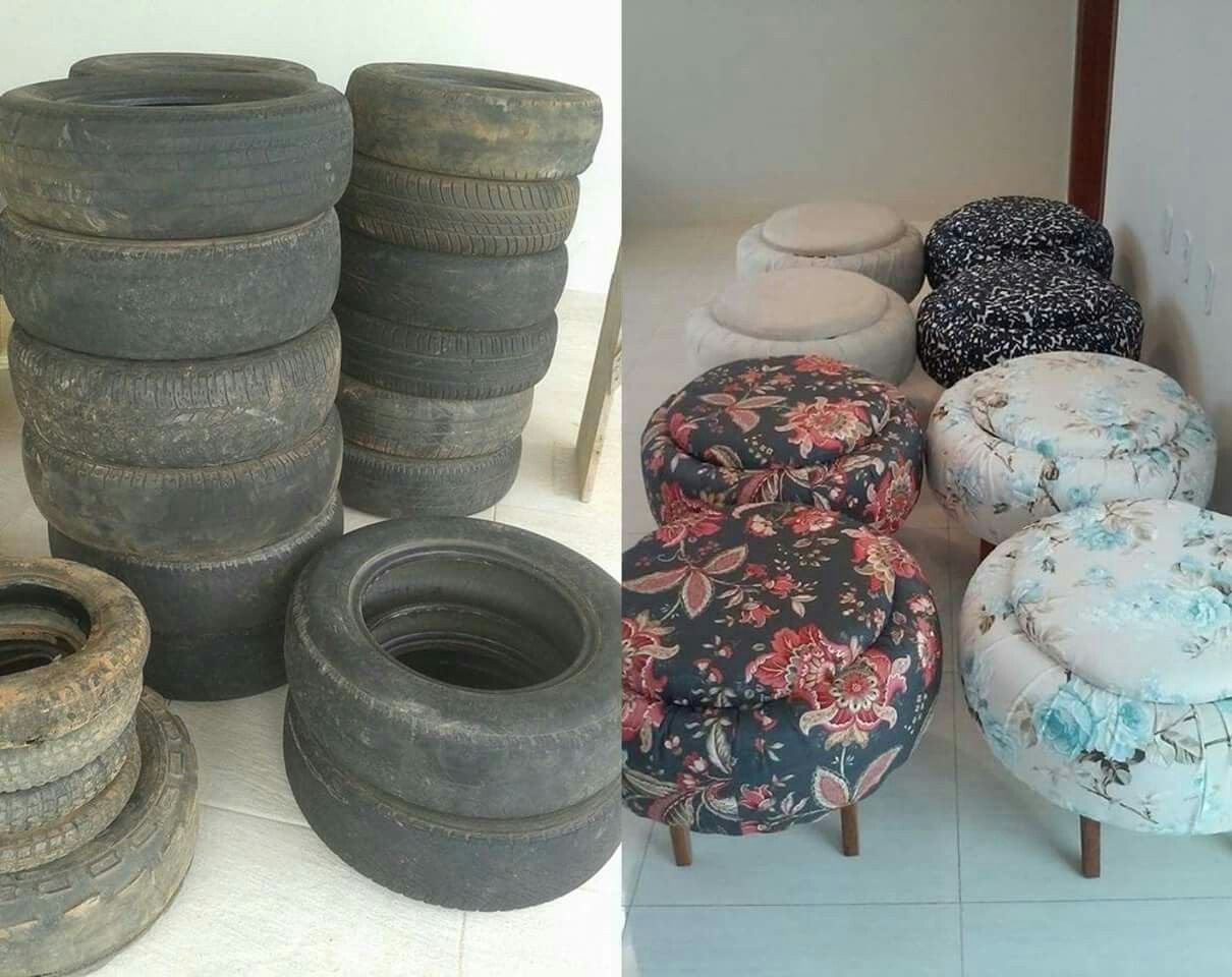 Пуфы из автомобильных покрышек