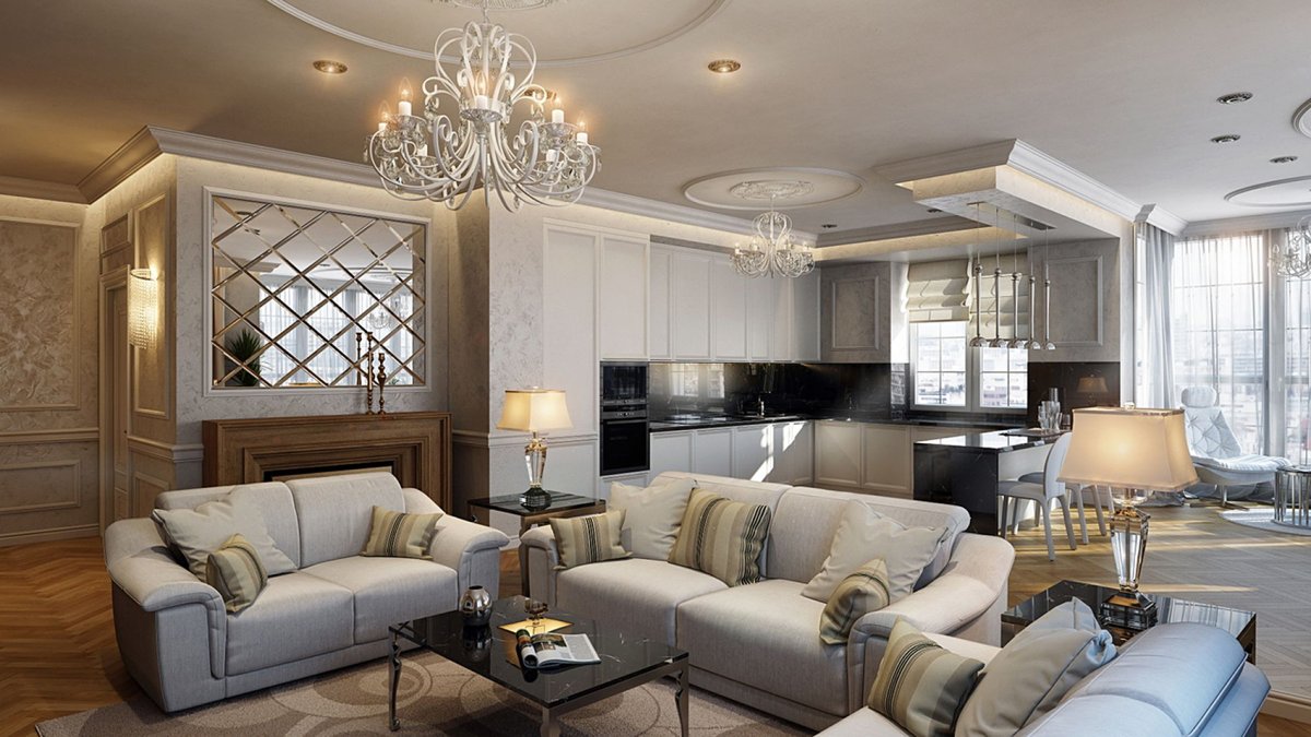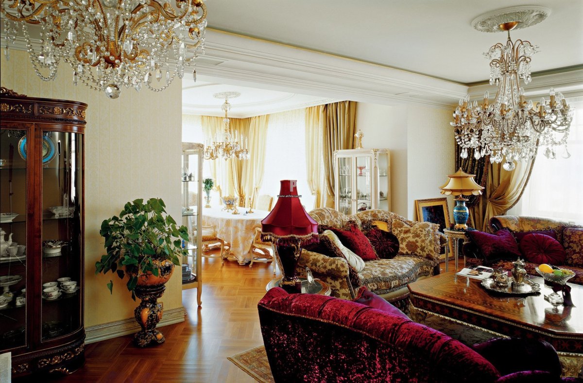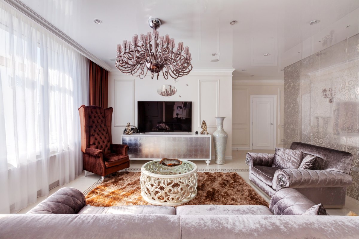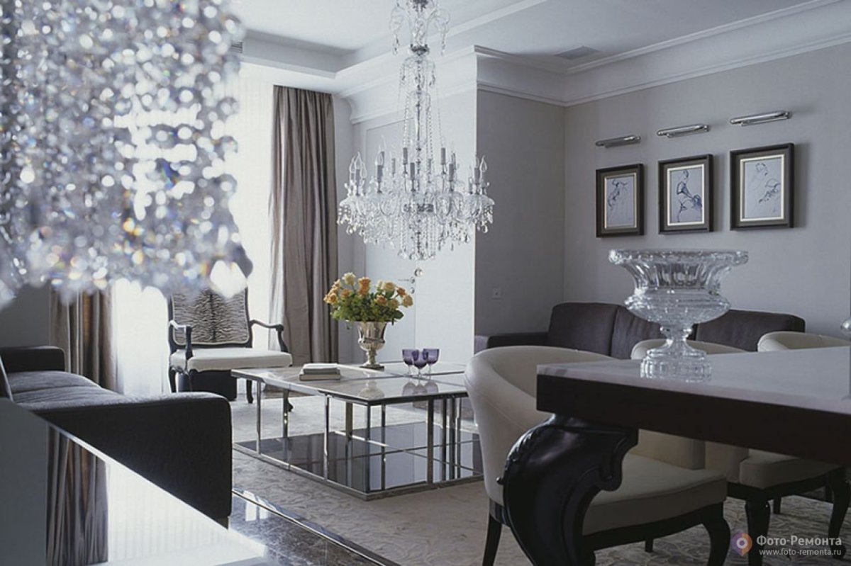 Люстра Майтони хрусталь в интерьере Неоклассика