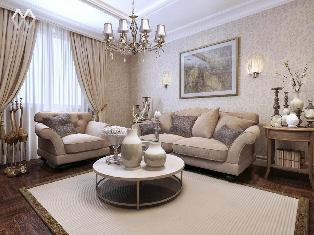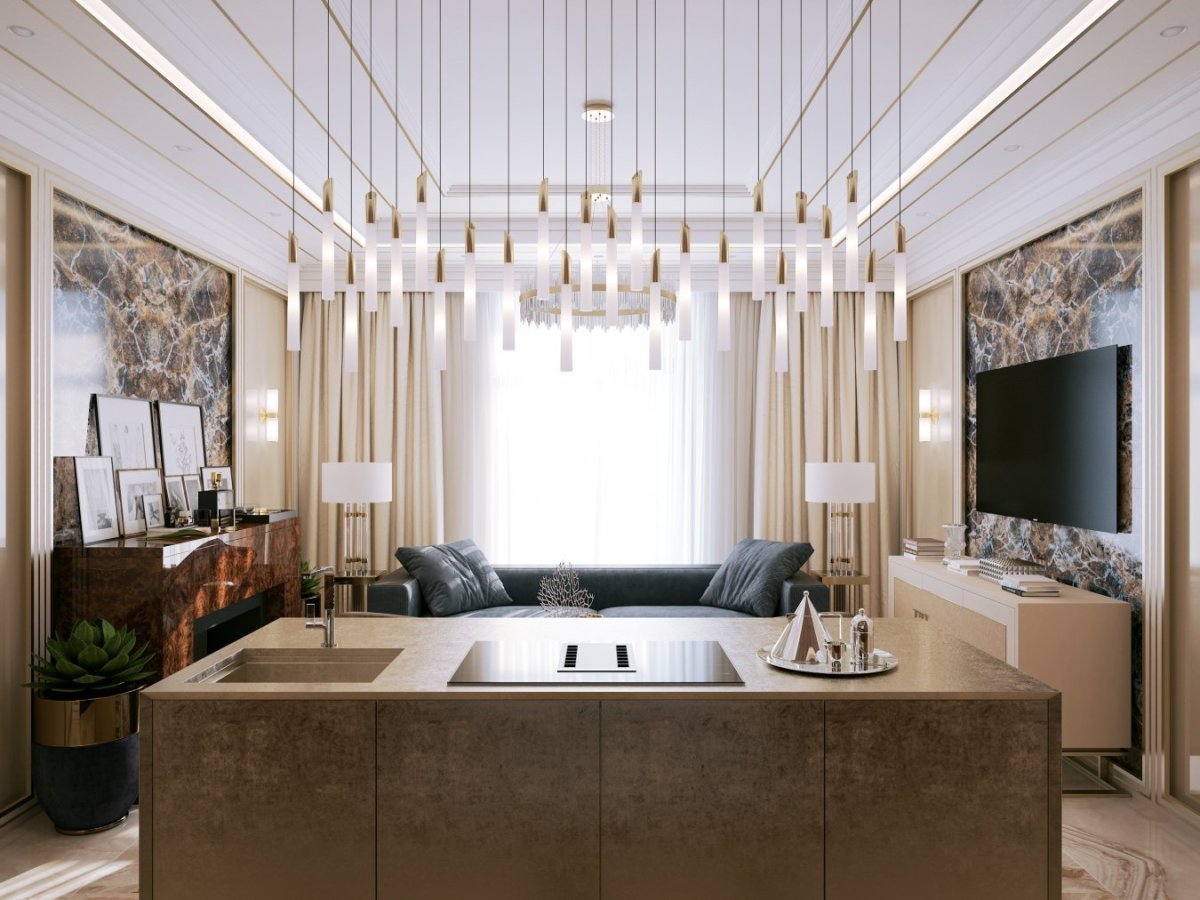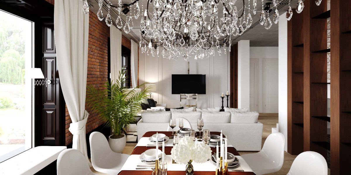 Люстра Майтони хрусталь в интерьере Неоклассика
