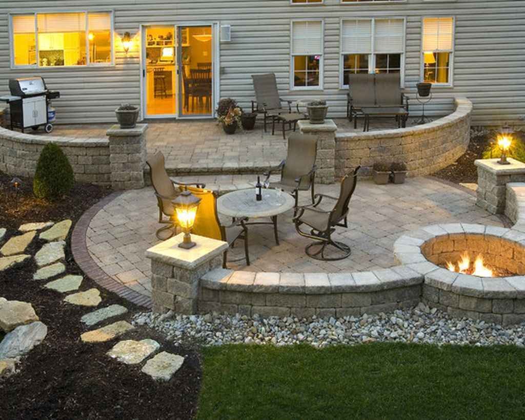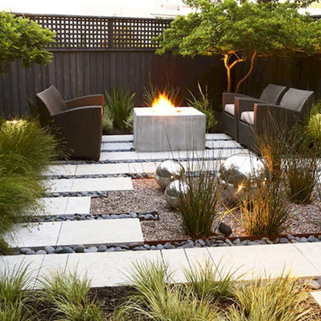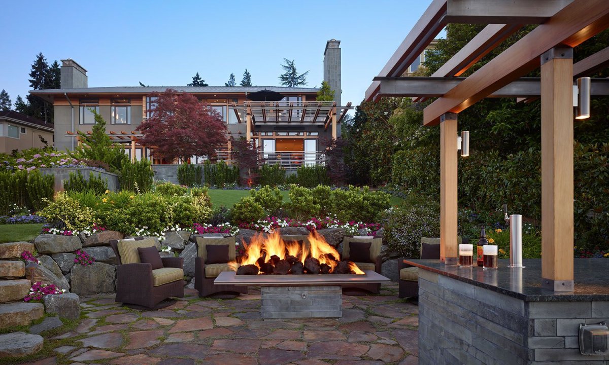 Ландшафт патио с кострищем