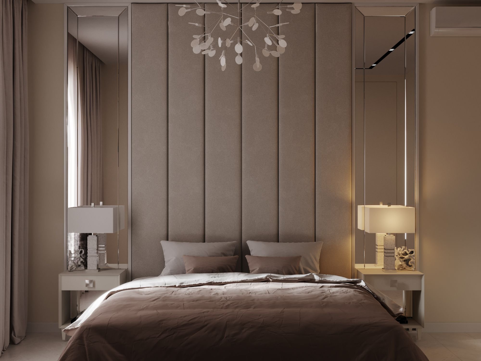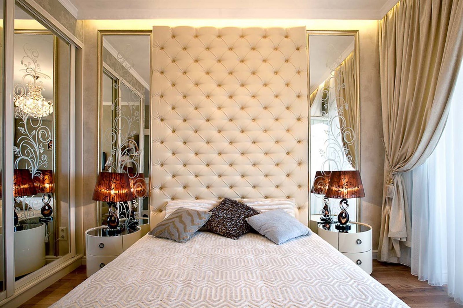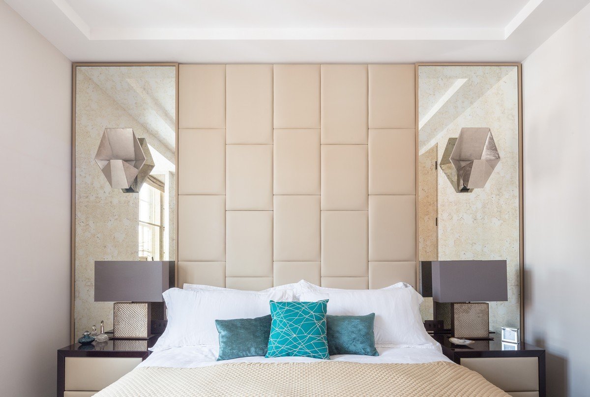 Зеркальные панели за кроватью