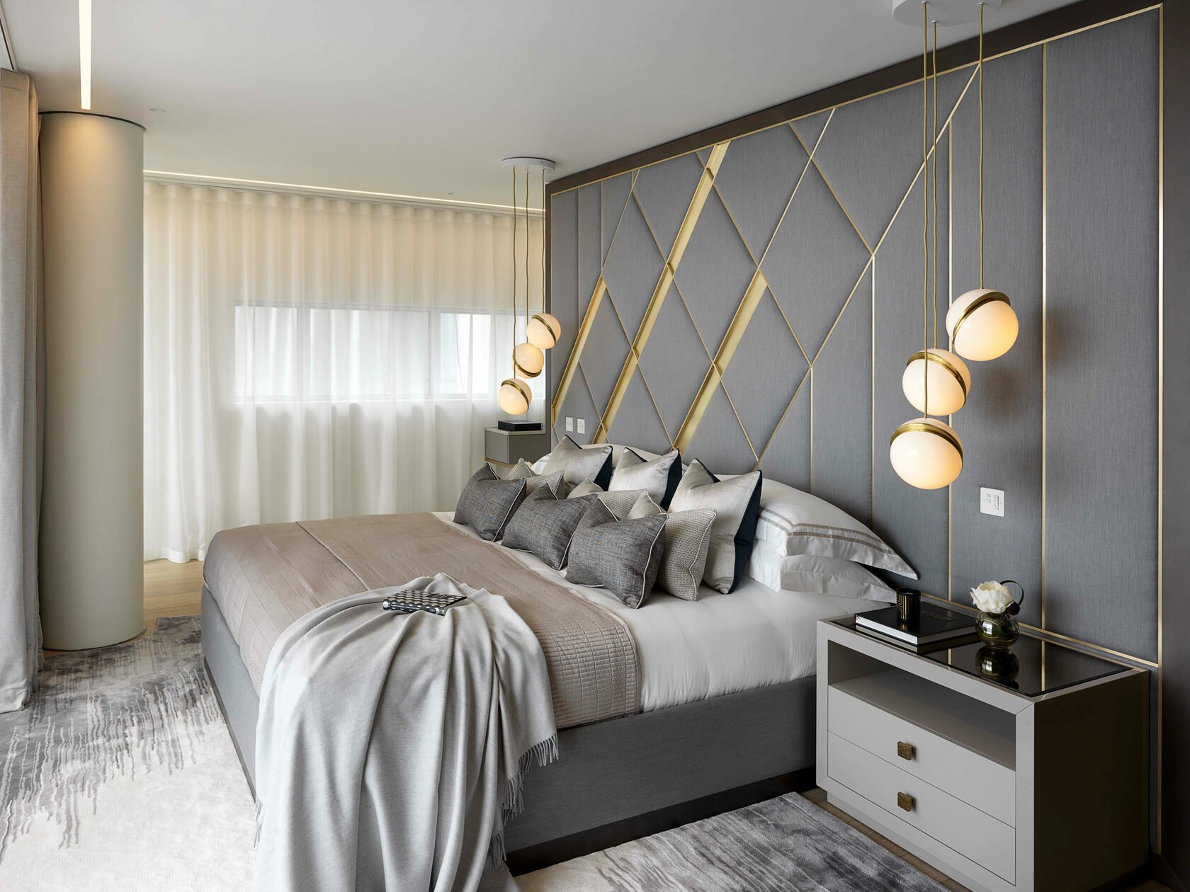 Изголовье кровати в спальне
