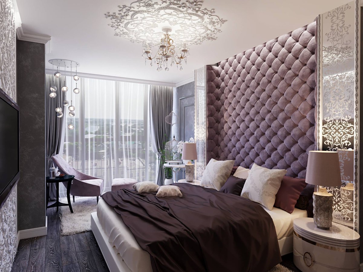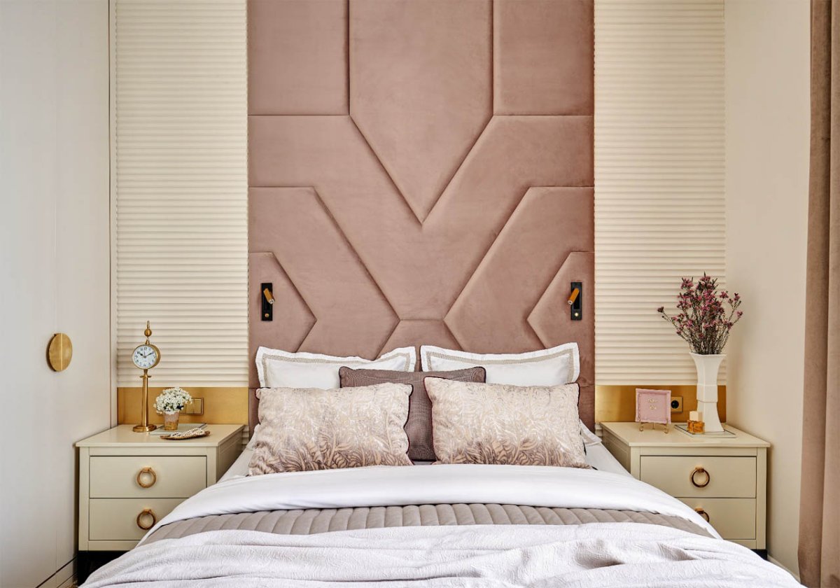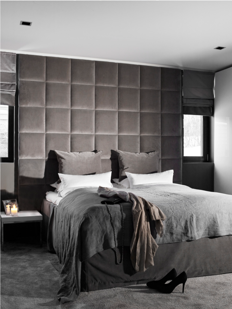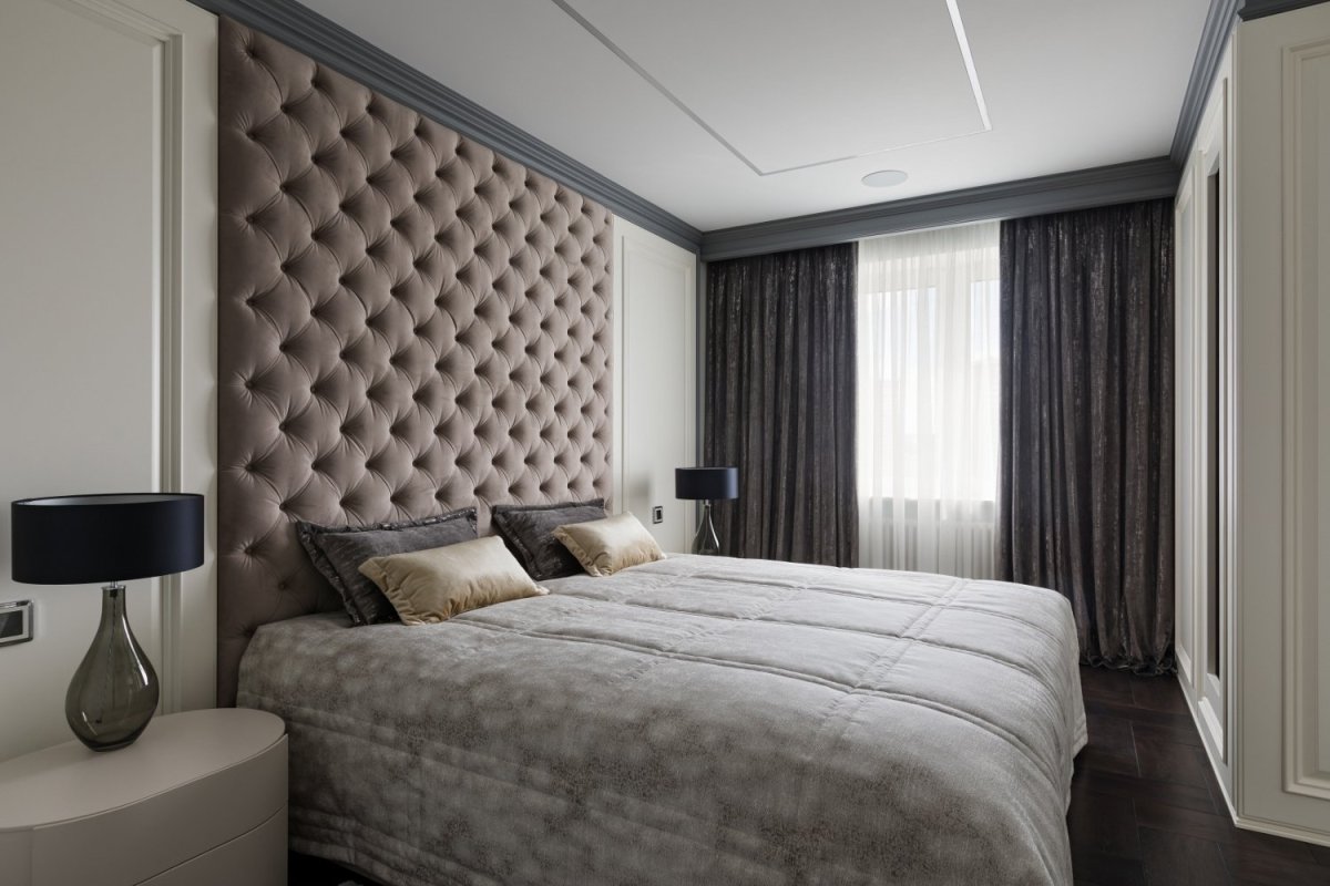 Спальня с мягкими стеновыми панелями