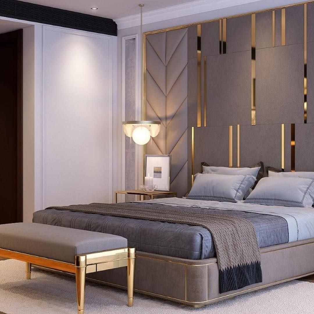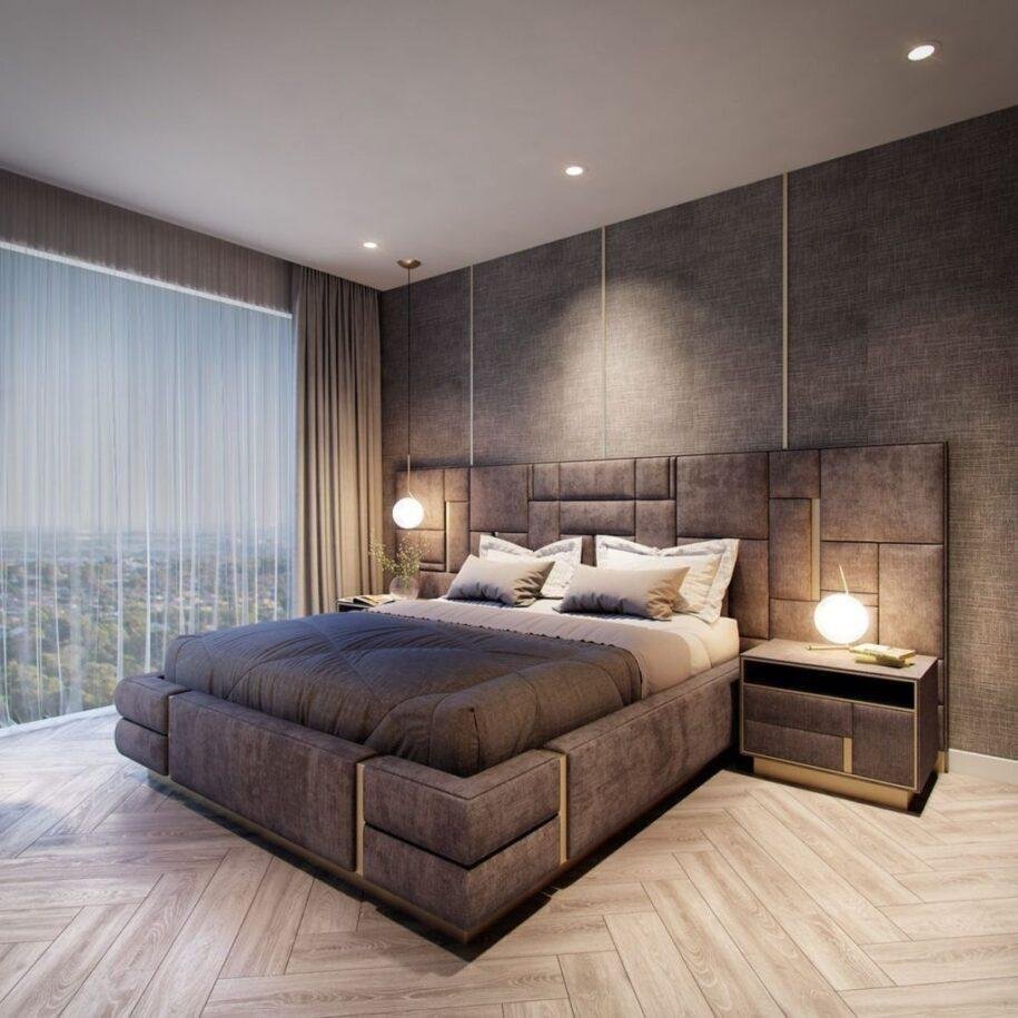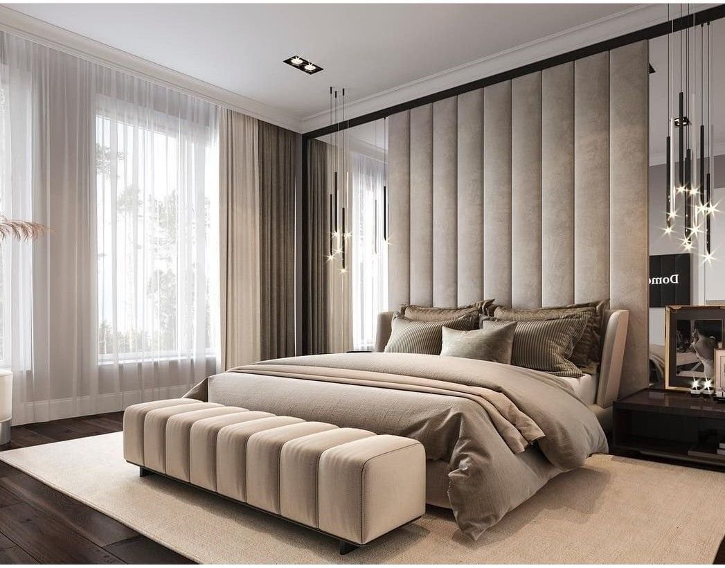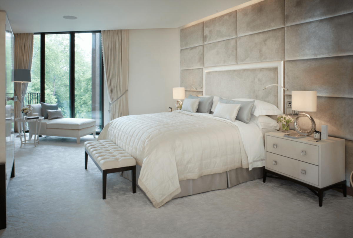 Спальня с мягкими стеновыми панелями
