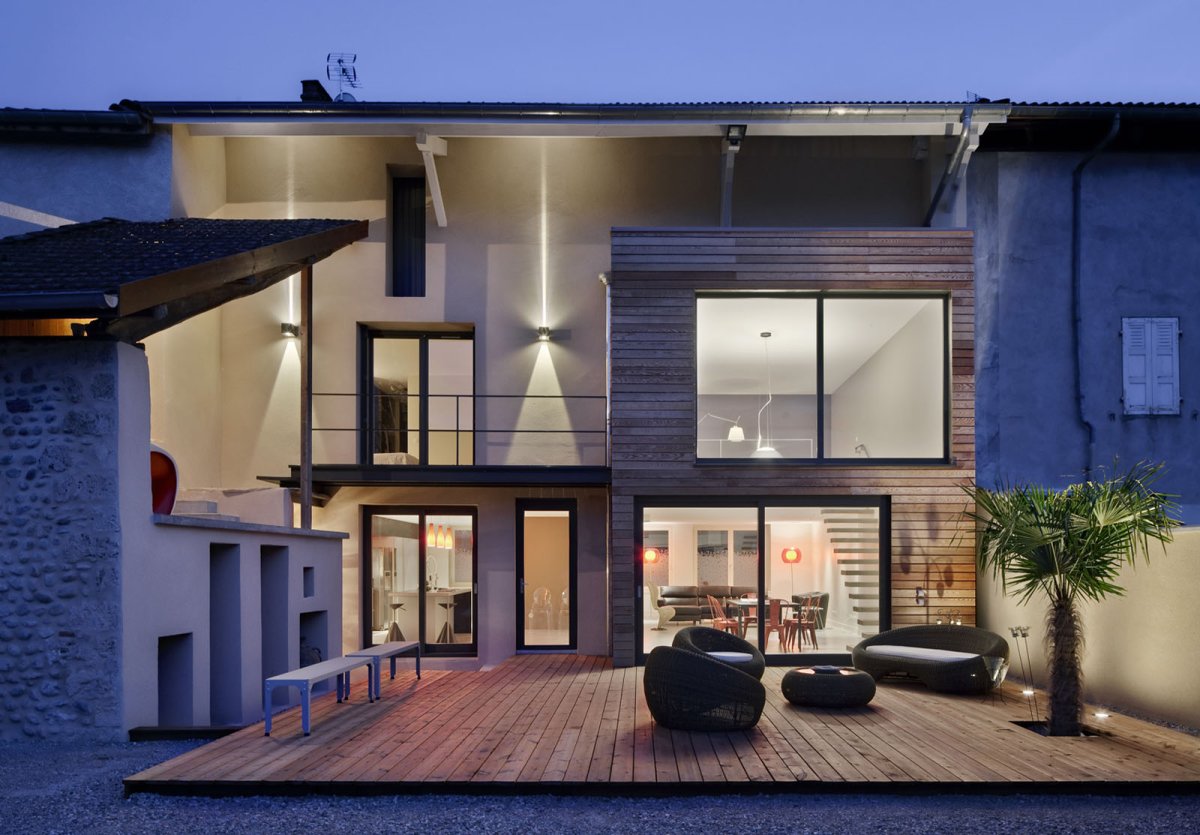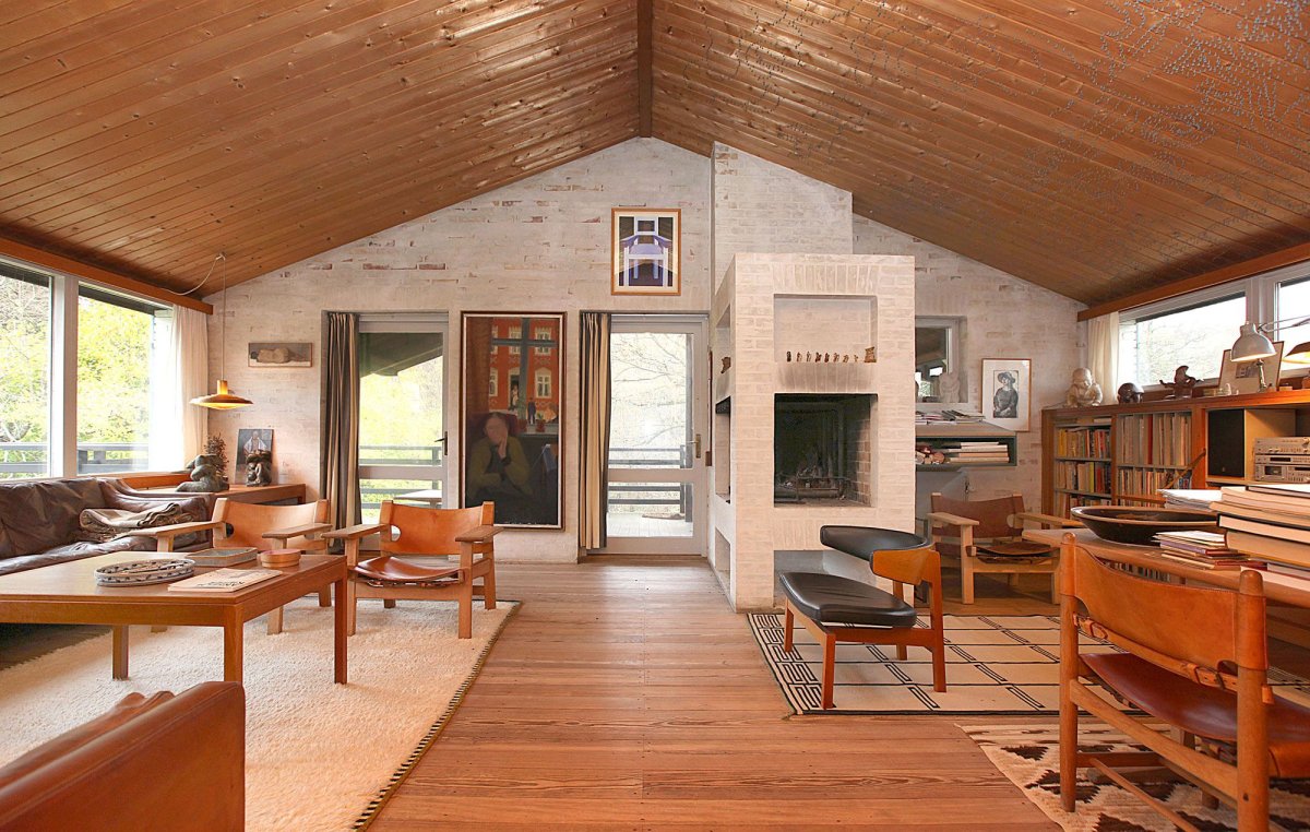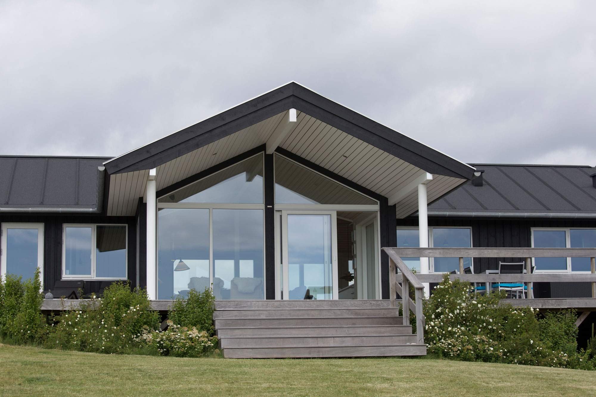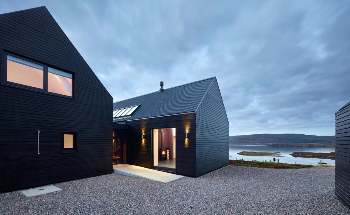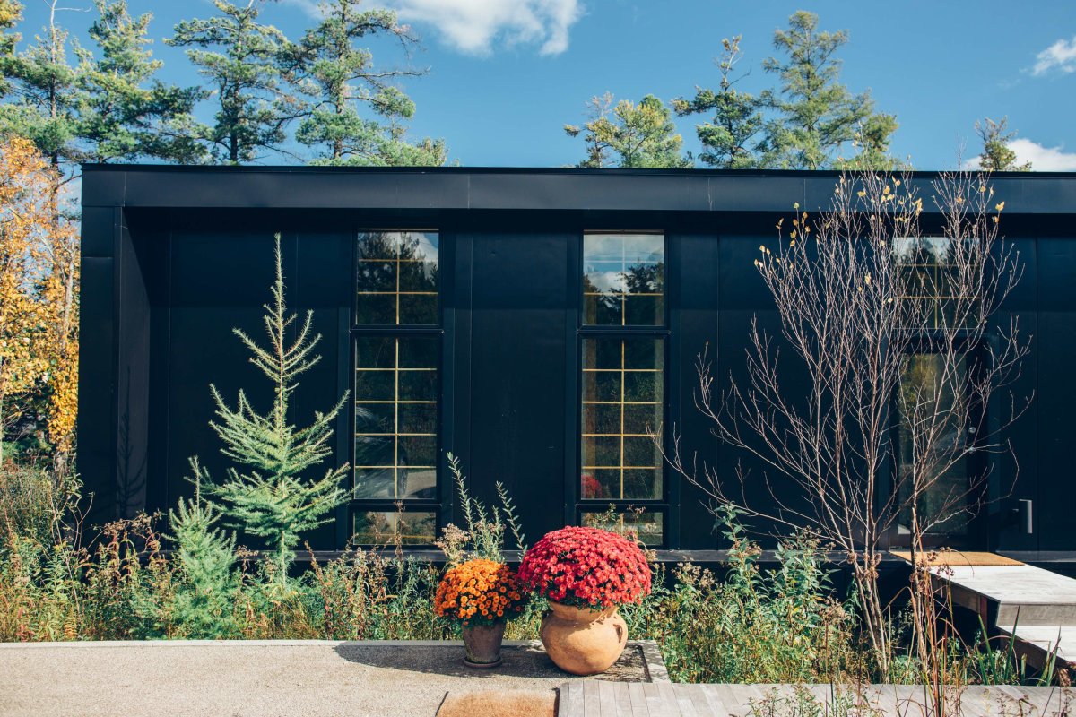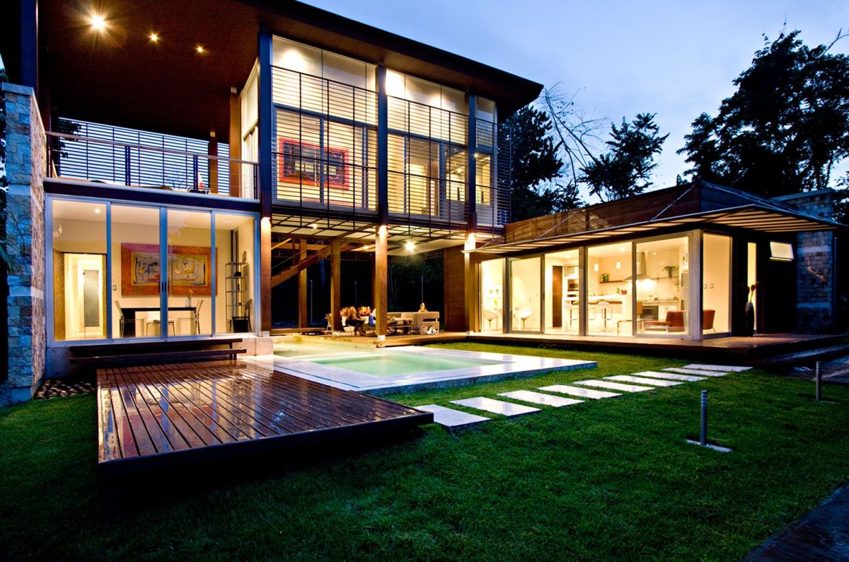 Одноэтажный деревянный дом с плоской крышей и панорамными окнами