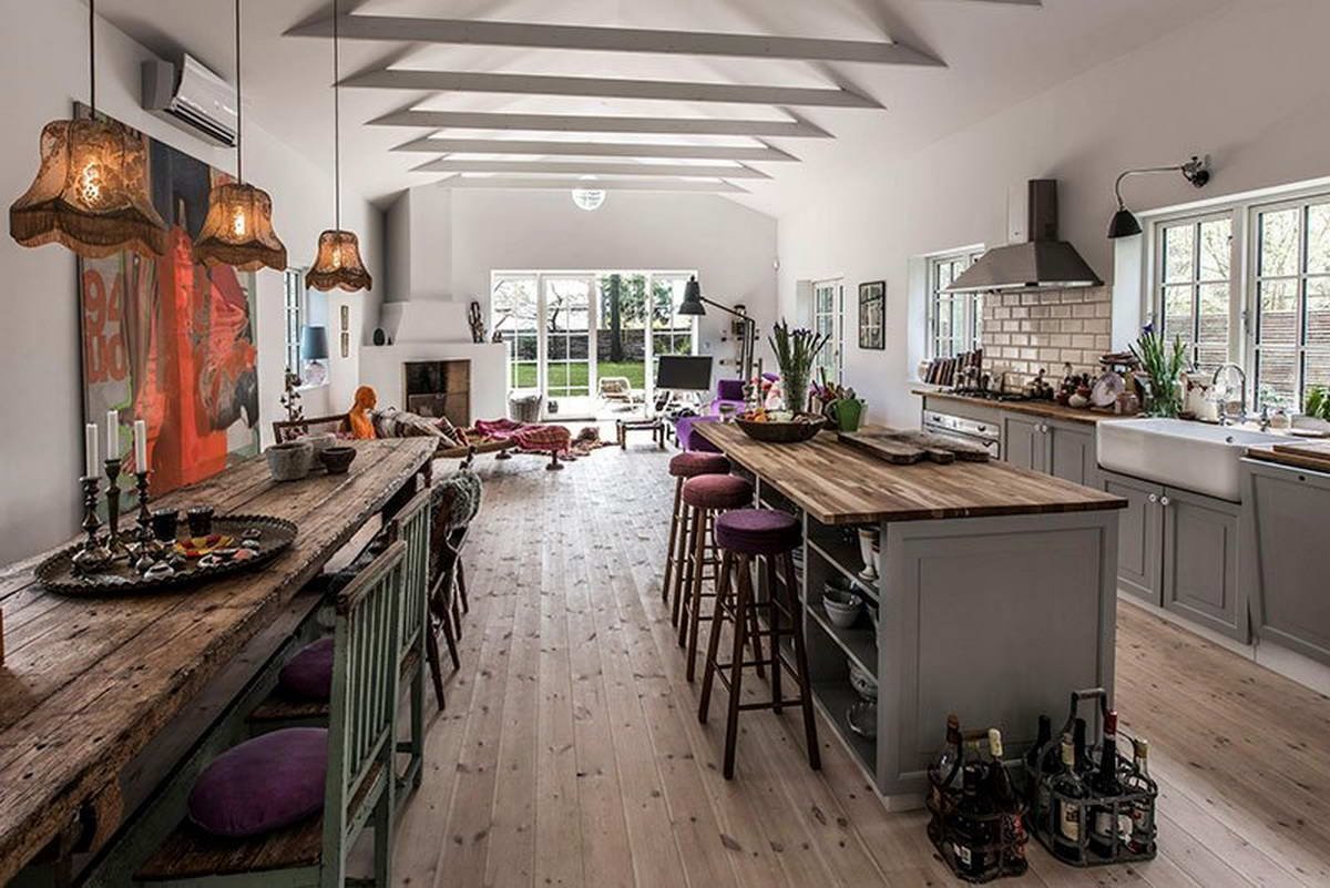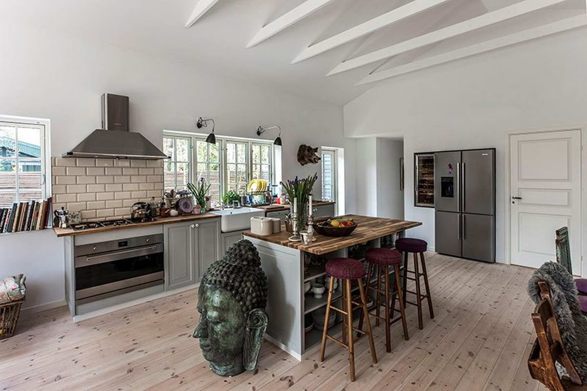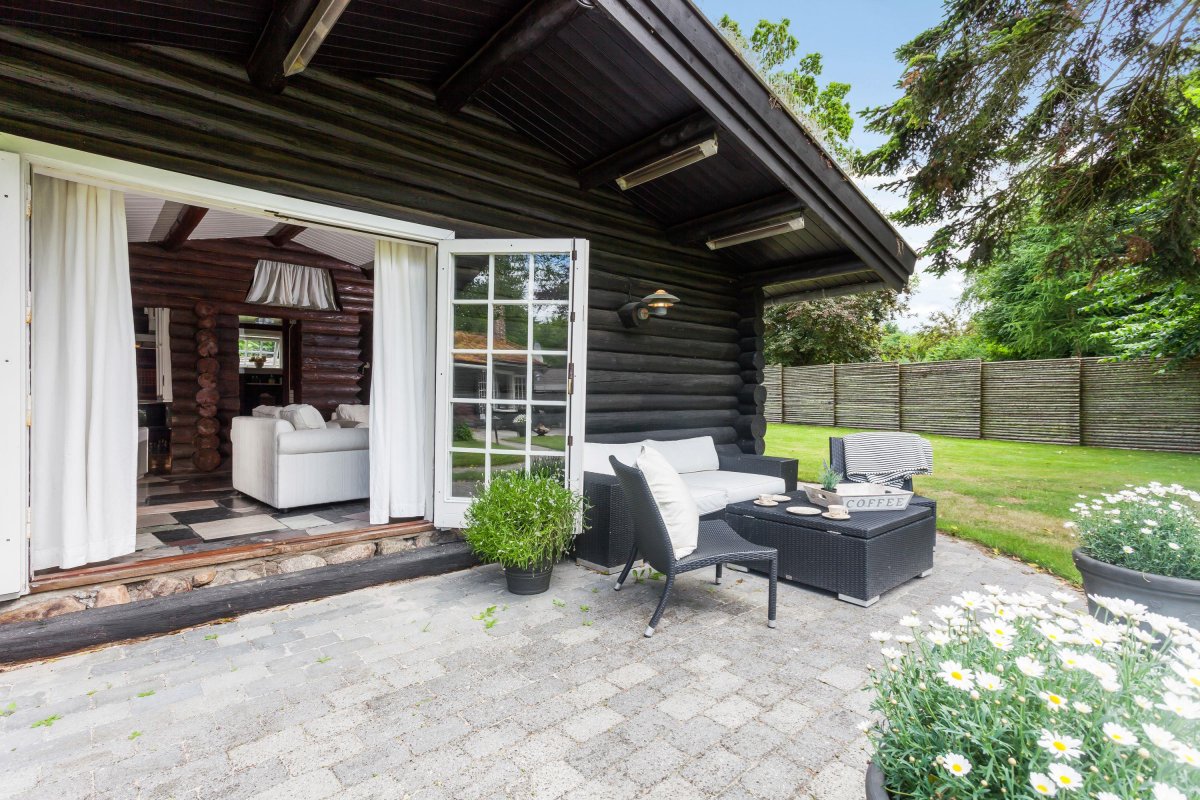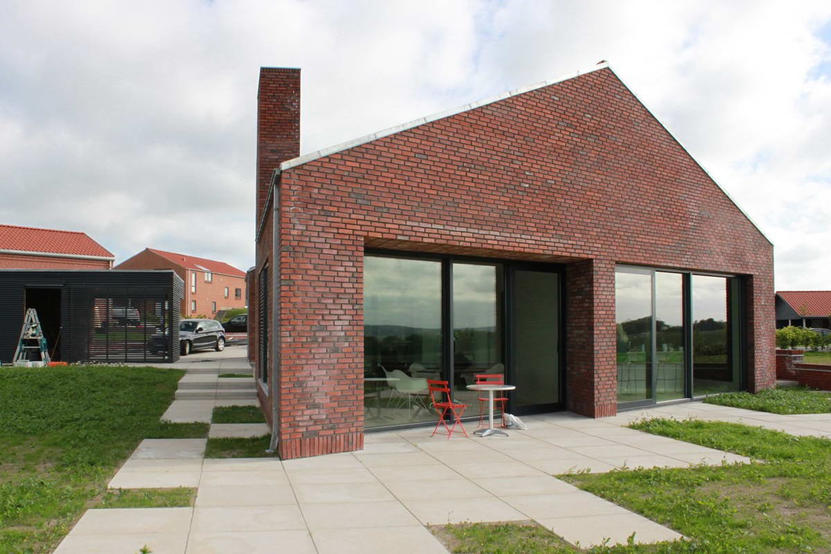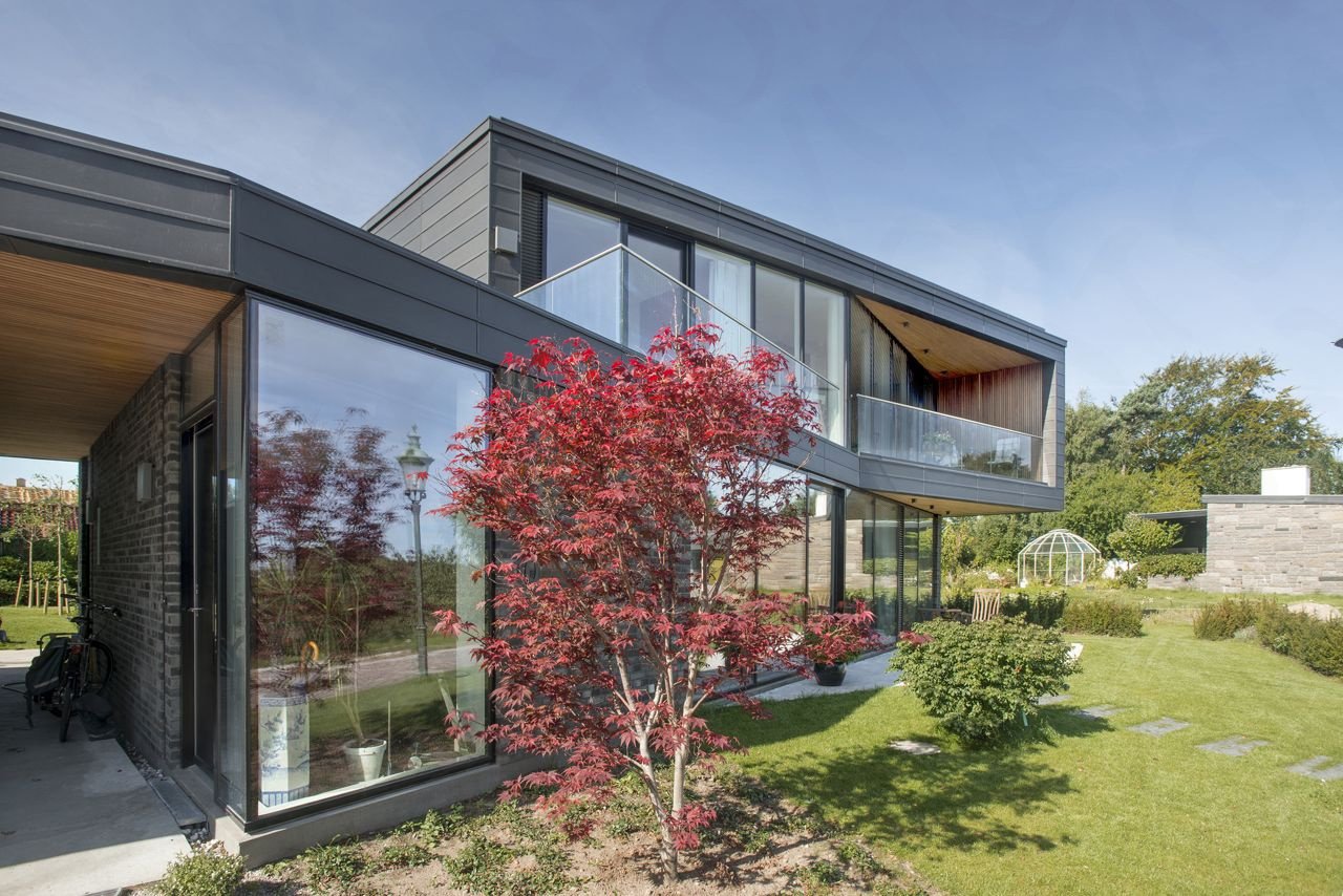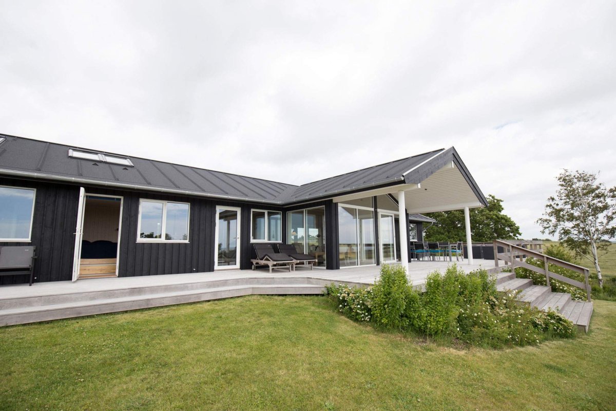 Одноэтажный деревянный дом с плоской крышей и панорамными окнами