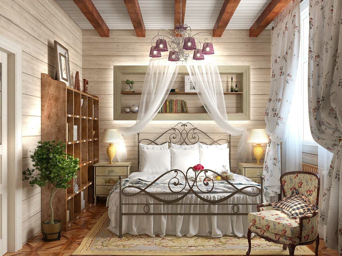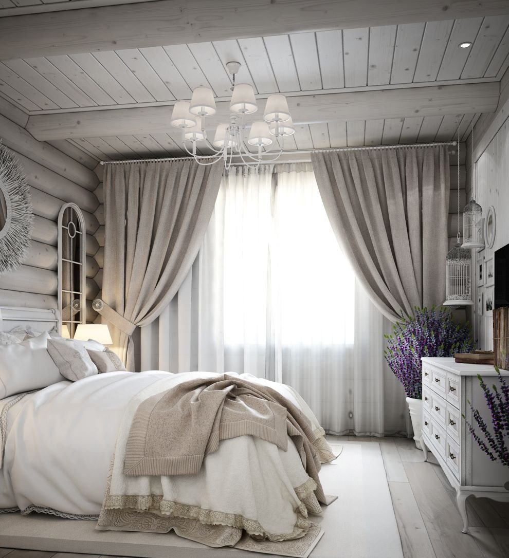 Спальня в брусовом доме в стиле Прованс