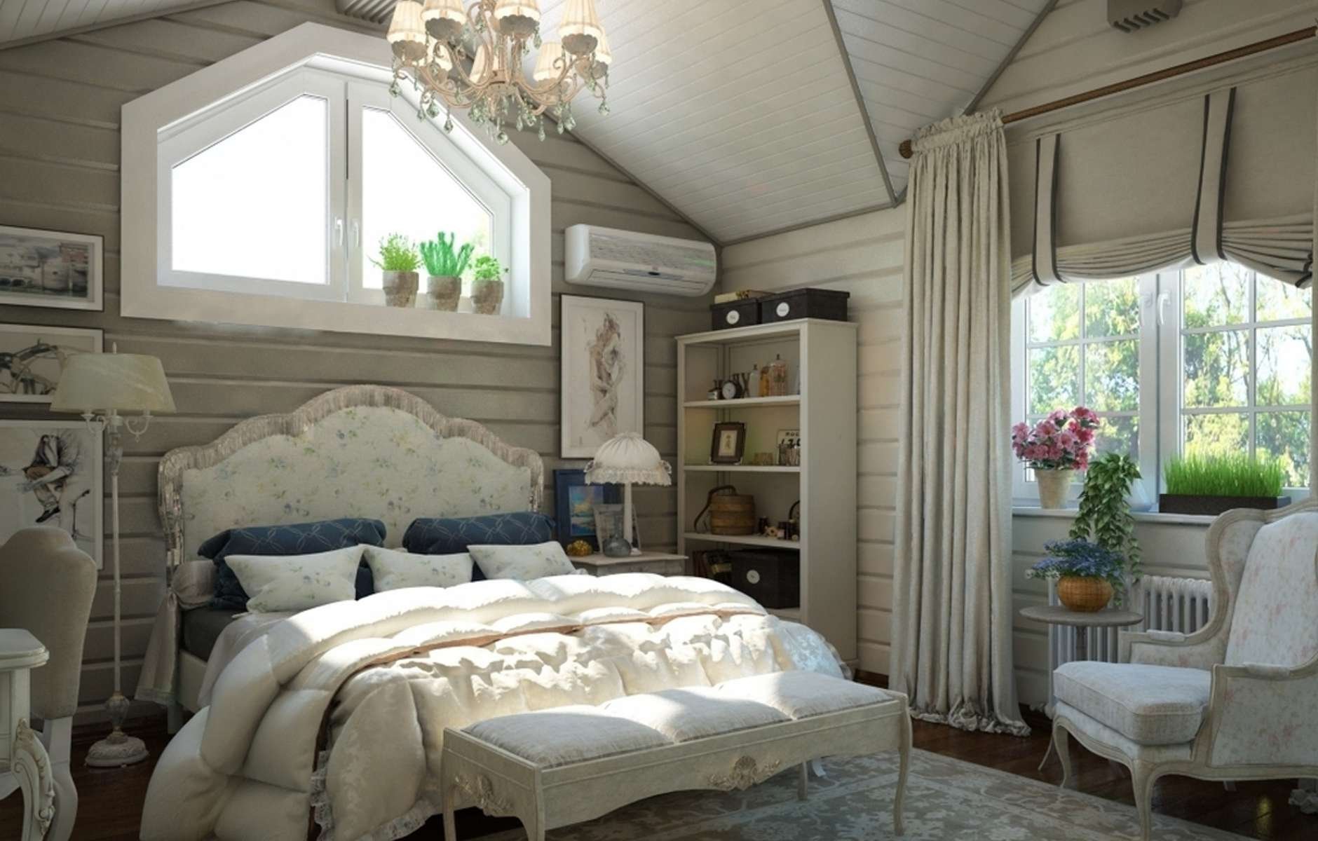 Спальня в Прованс стиле в срубовом доме