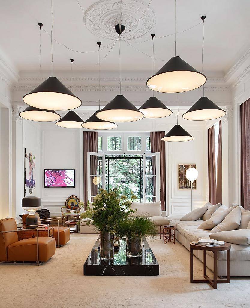 Две люстры в гостиной в интерьере