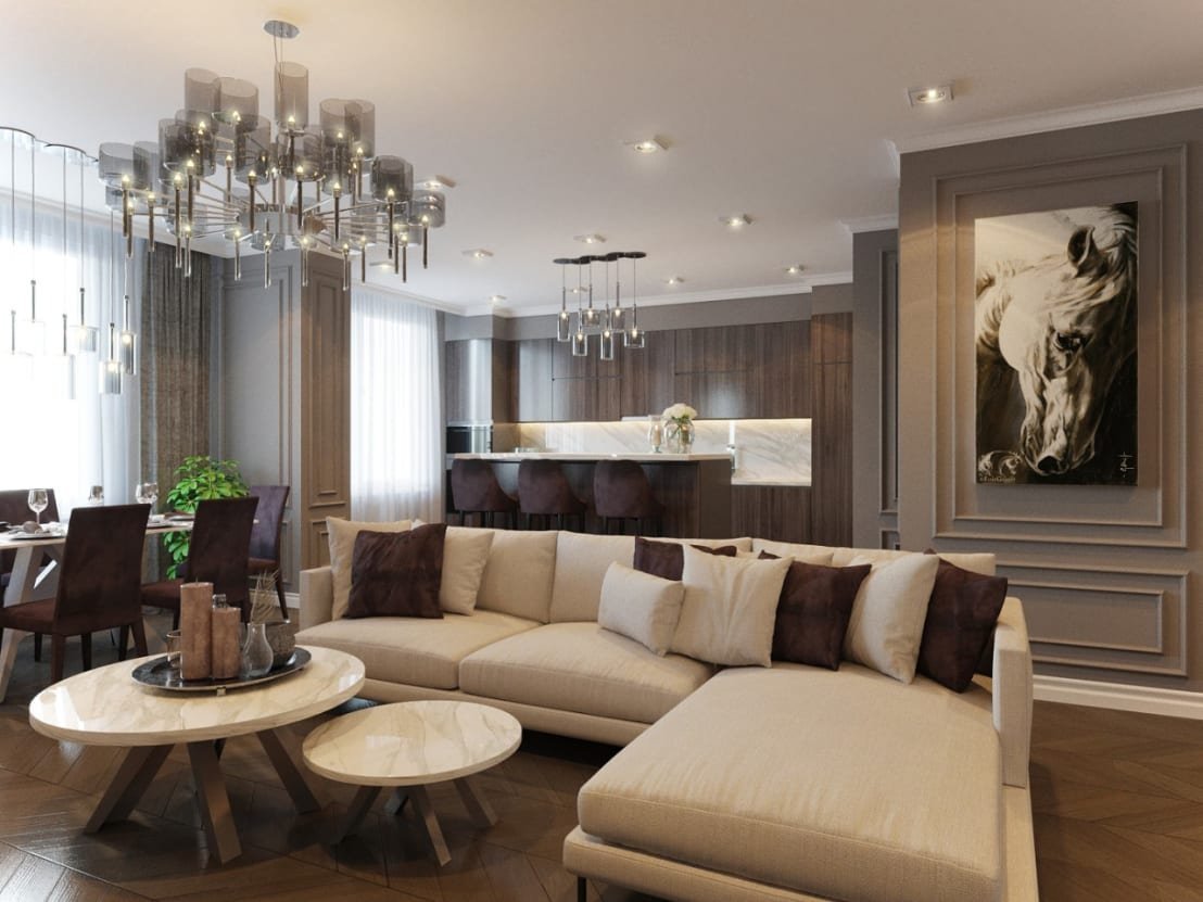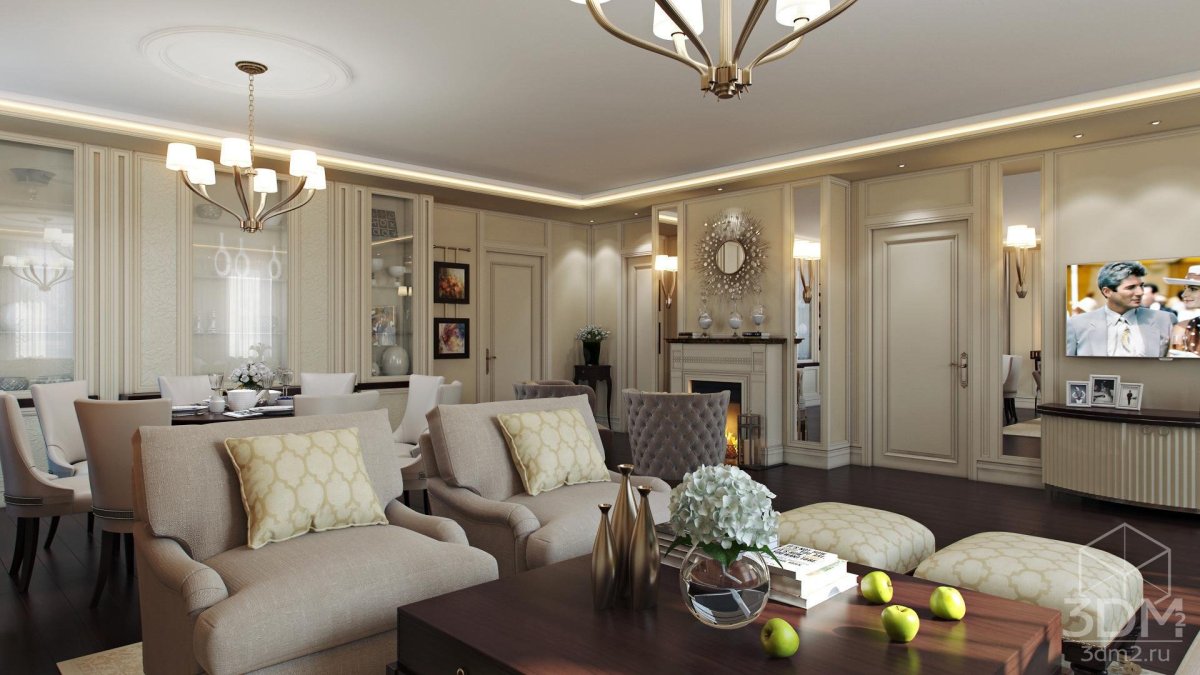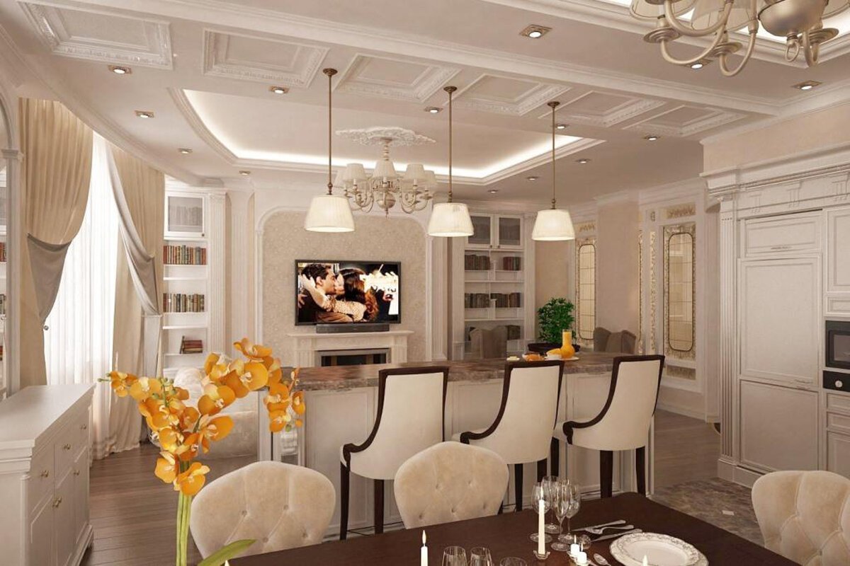 Кухня столовая гостиная в стиле Неоклассика