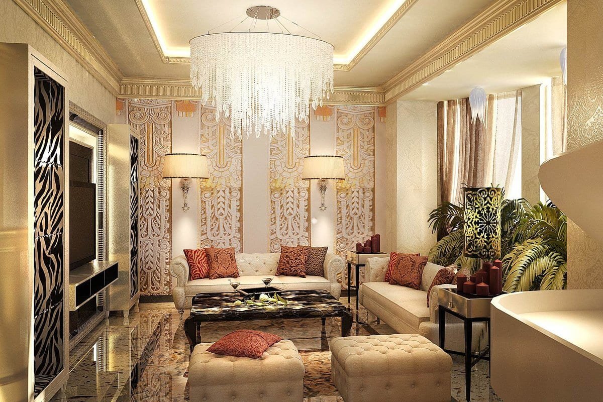 Люстры в интерьере гостиной