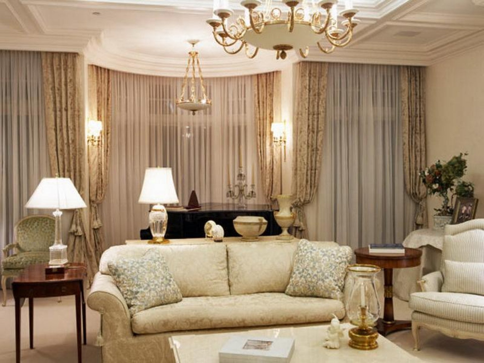 Текстиль в интерьере гостиной в классическом стиле
