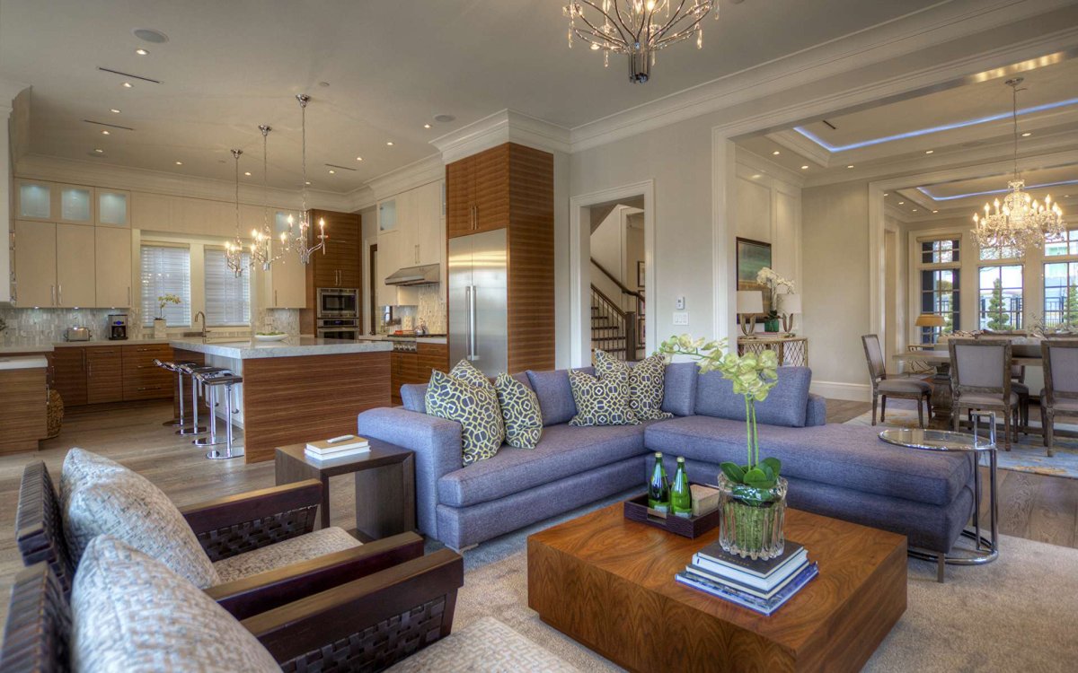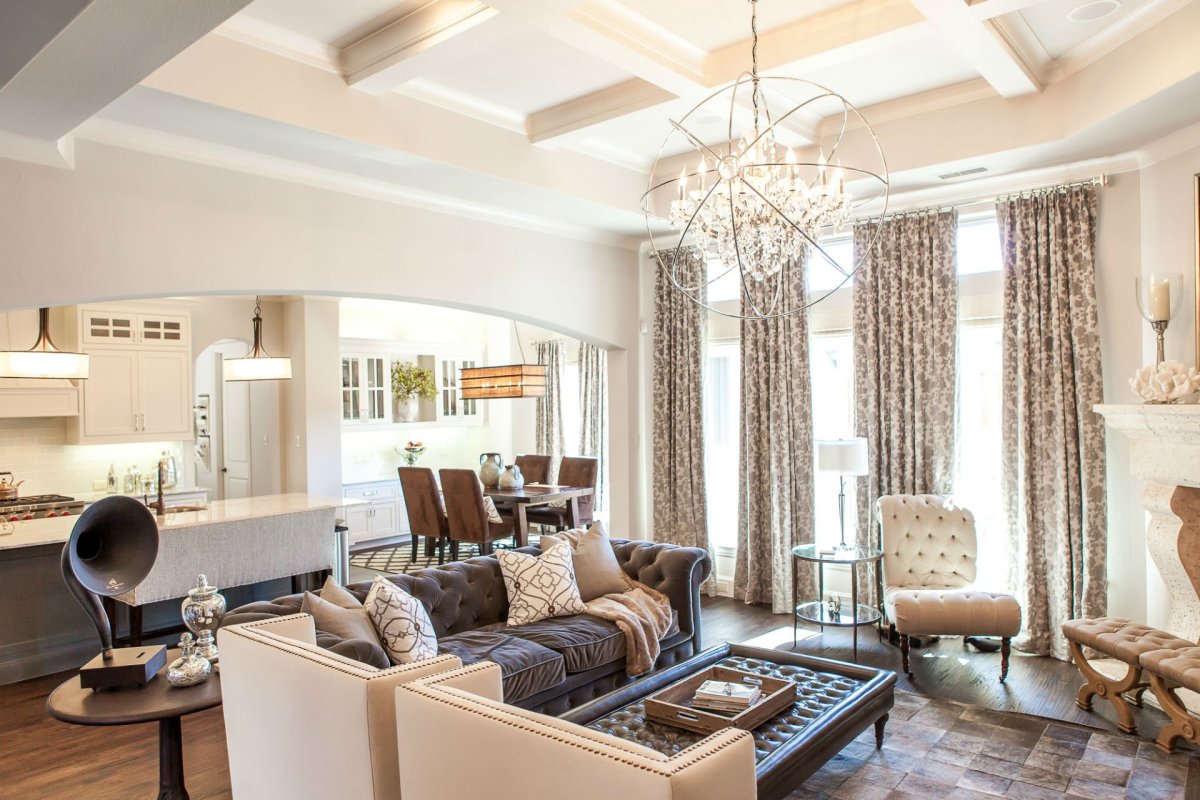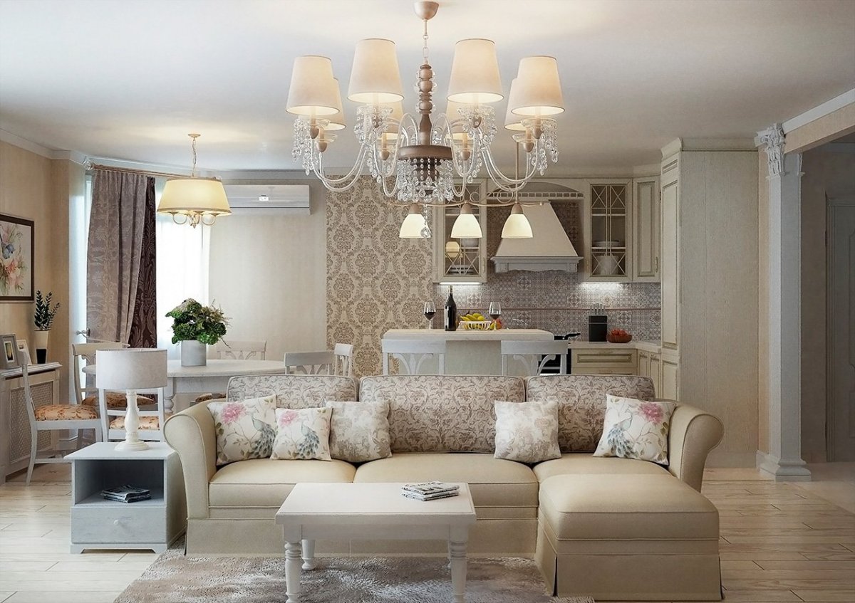 Люстры в гостиной совмещенной с кухней