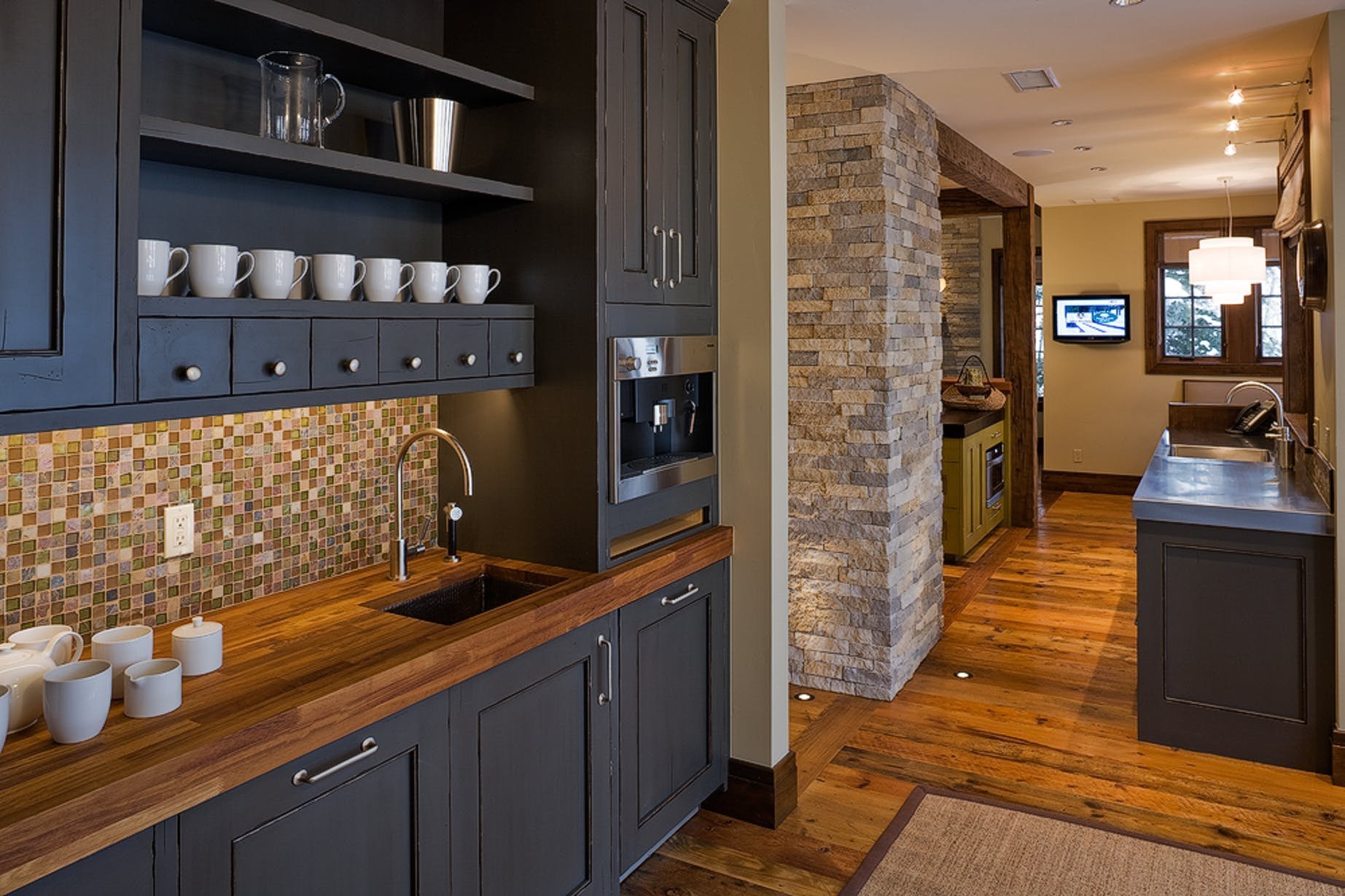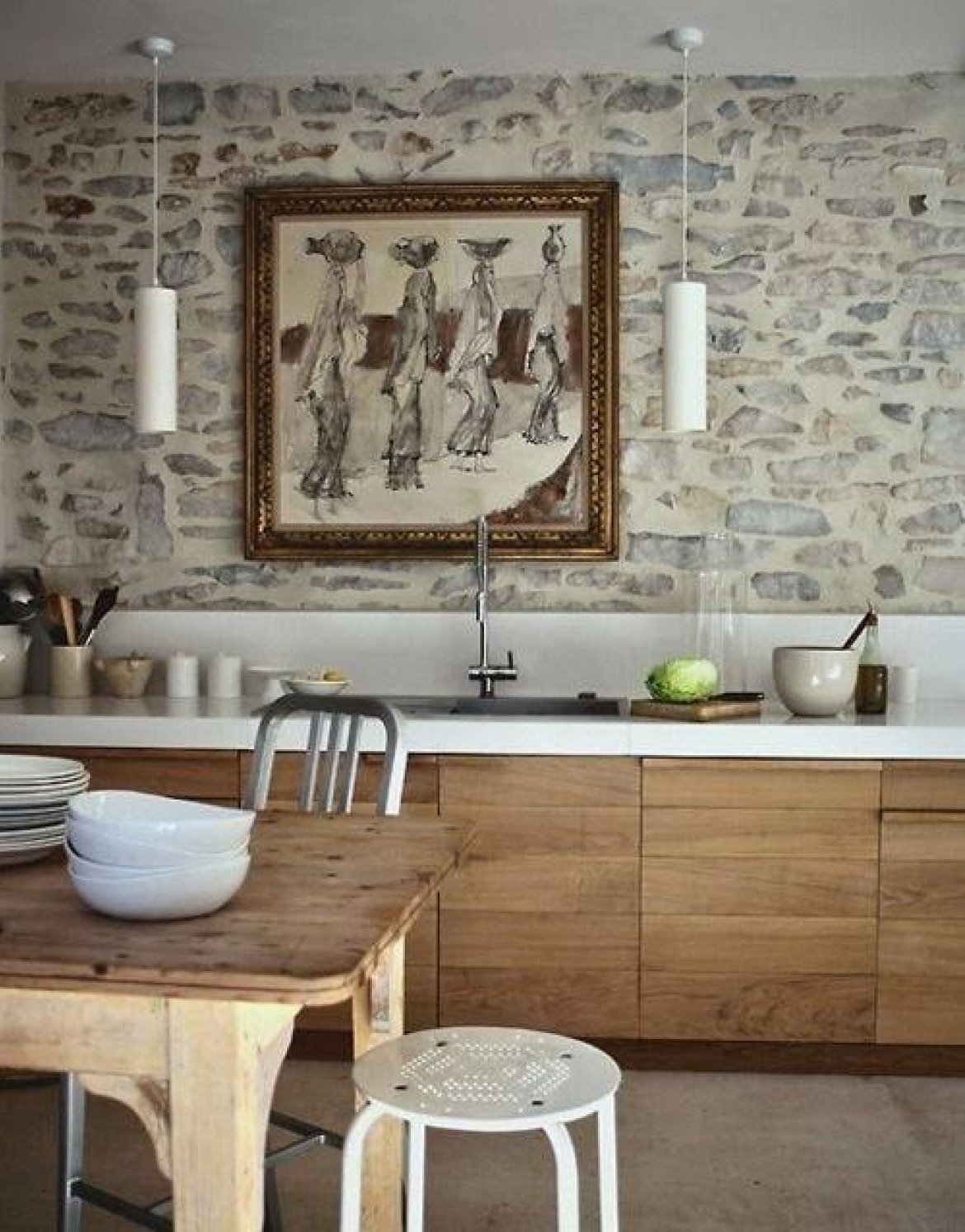 Кухня в стиле дерево и камень