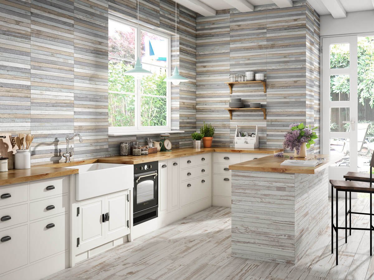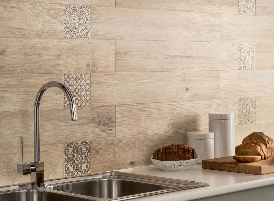 Плитка под дерево на фартук для кухни