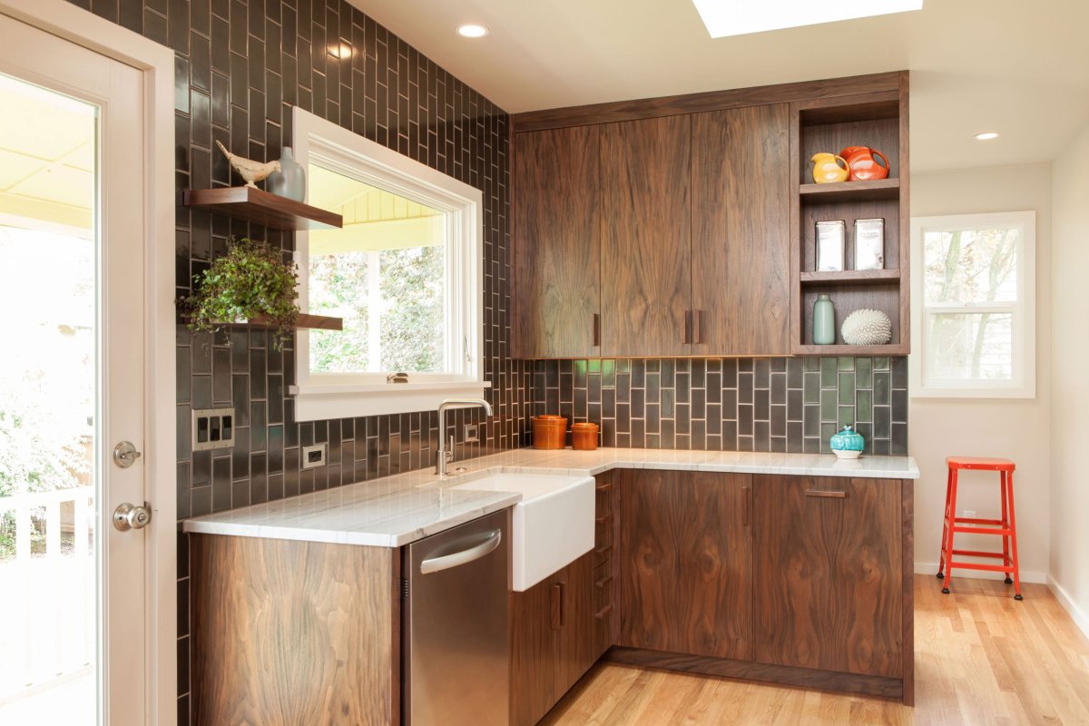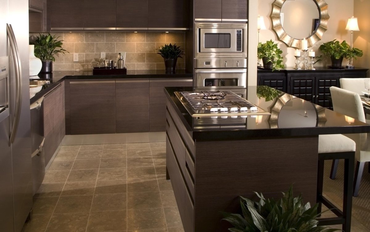 Коричневая плитка на кухне