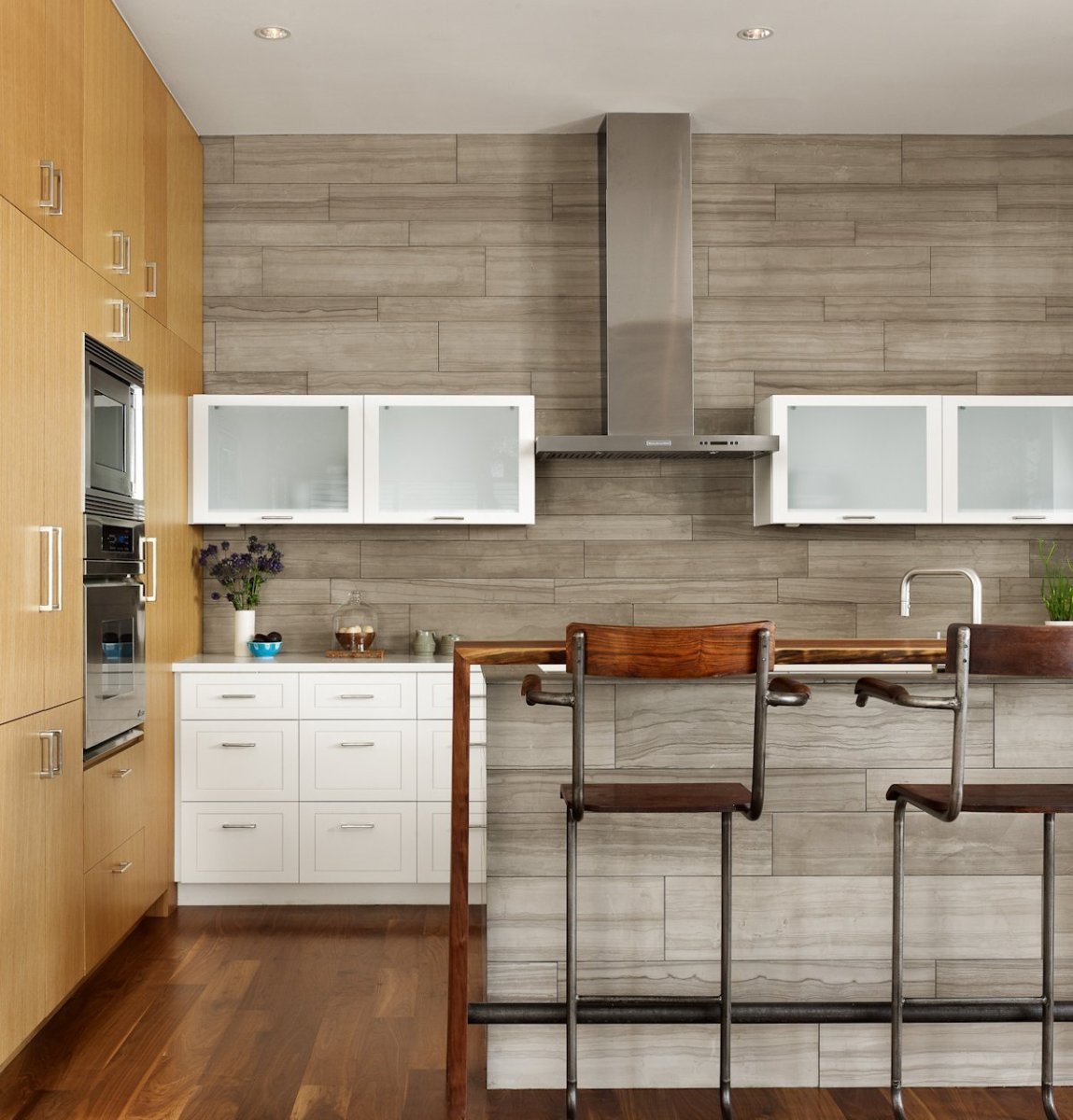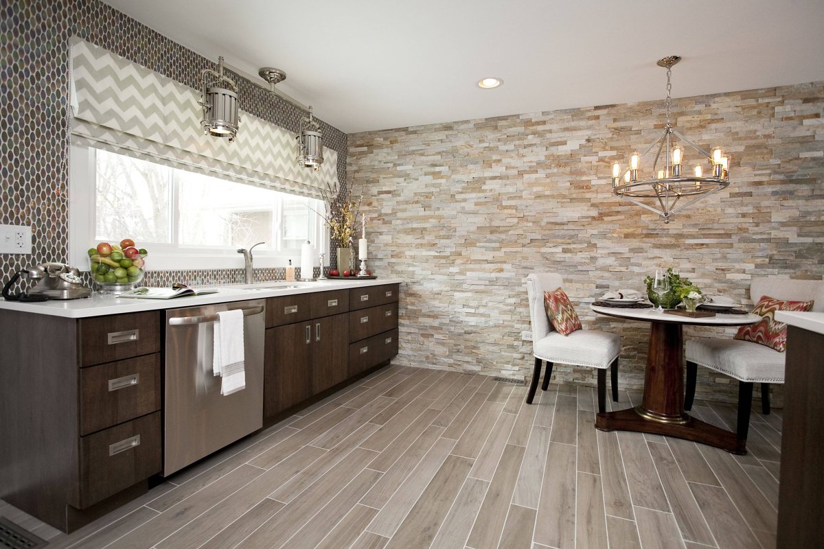 Плитка под дерево в интерьере кухни