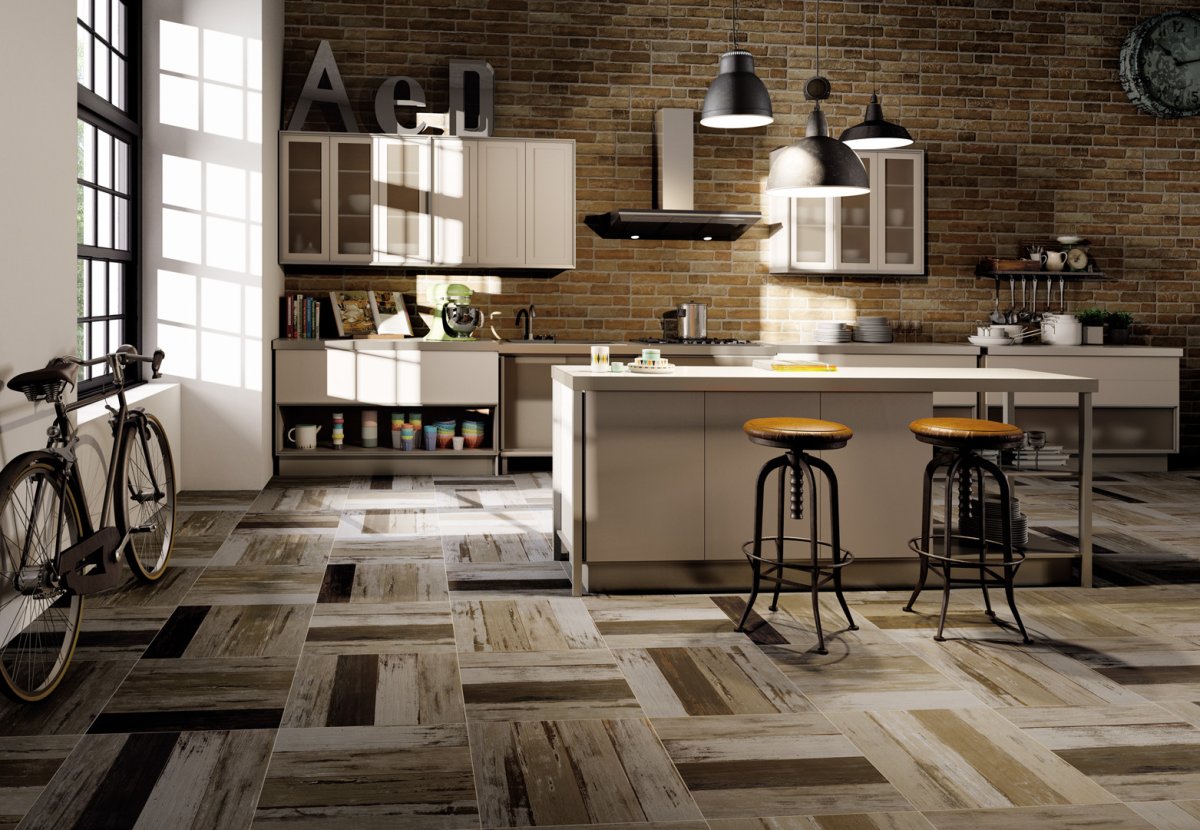 Напольная плитка для кухни под дерево