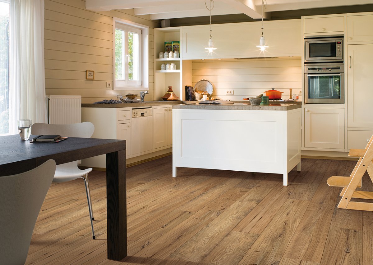 Деревянный пол на кухне