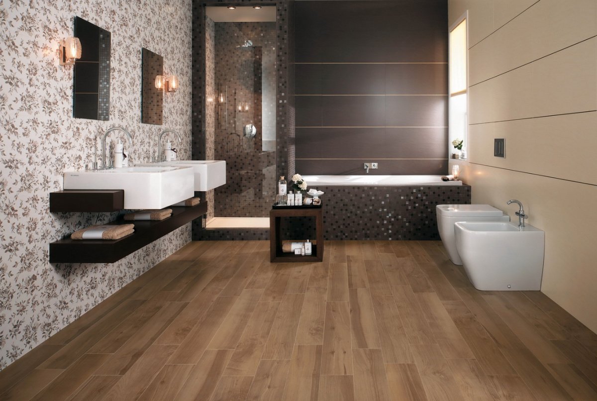 Плитка в ванную под дерево