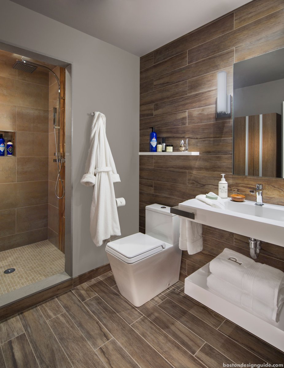 Ванная с плиткой под дерево