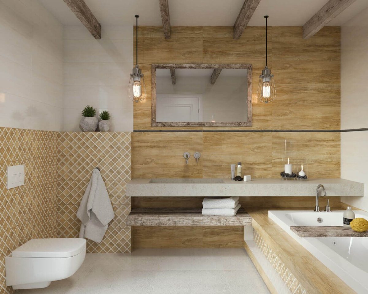 Ванная плитка под светлое дерево