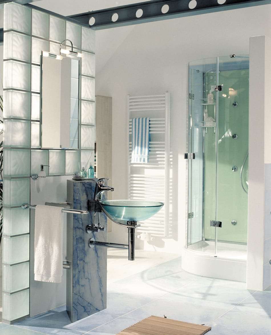 Стеклянные кирпичи и стеклоблоки в интерьере
